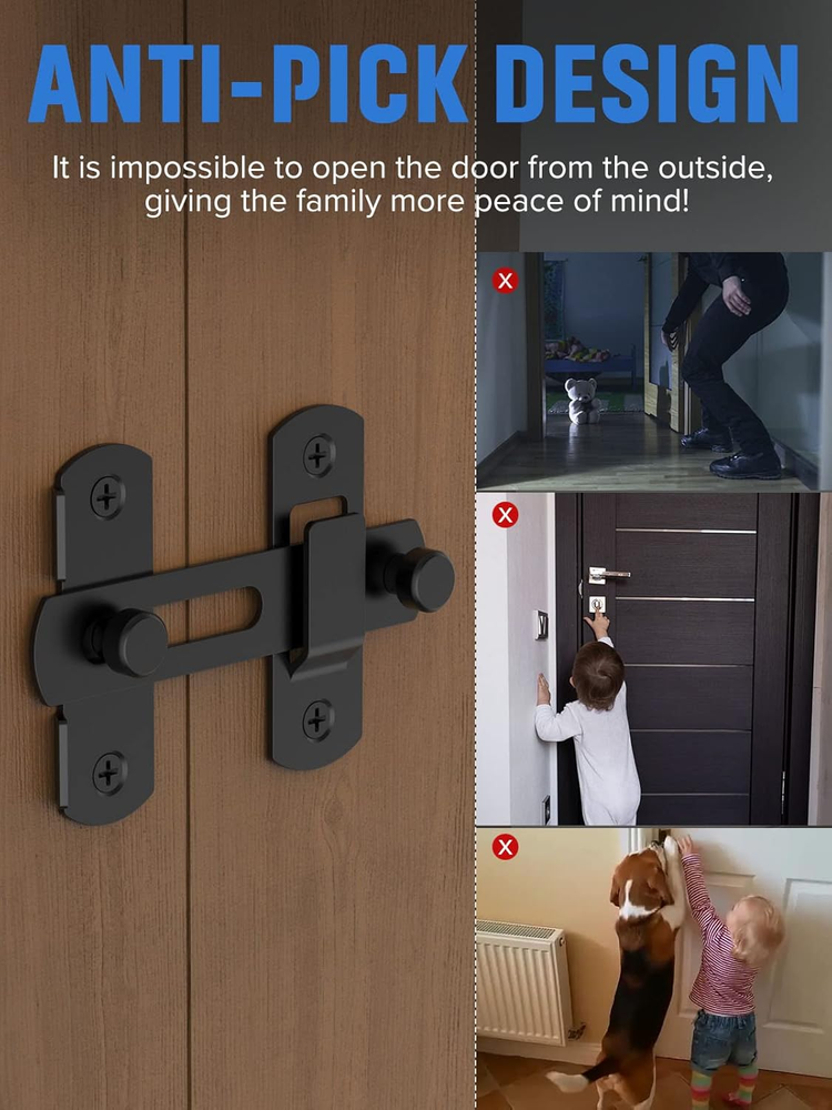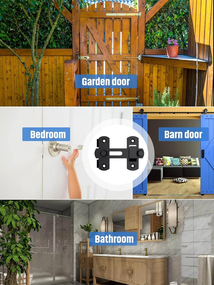 Store New Arrivals Add to Favorite View Feedback Sliding Barn Door Lock, Stainless Steel Safety Flip Gate Latches & Door Bolt Locks for Wine Cabinet, Bathroom, Outdoor, Garage, Garden, Closet (1, Black) Description Item model number DL-01 Part Number DL-01 Batteries Required? No Item Package Quantity 1 Color Black Product Dimensions 4.33 x 1.96 x 1.18 inches Item Weight 2.82 ounces Batteries Included? No Color Name Black Manufacturer MeBantoo Reliable Material: 180° barn door lock is is made of stainless steel and has a multi-layer polished surface to eliminate any corrosion, rust and discoloration, ensuring durability and reliability. This matte black barn sliding door lock is smooth and does not hurt your hands Can be Mounted at Various Angles: Unlike ordinary barn door locks and latches, our locking barn door latch is not limited by the space between the door and the wall, whether it is a flat angle or a right angle, it can be installed and worked, lock the sliding door firmly, and toggle the latch, the lock can be 360° rotated , and you can mount the door hook lock on the left and right sides Easy Installation: 180 degree right angle door latch buckle comes with mounting screws for attachment to wood or other flat surfaces, it's very easy to install, you just need to use a screwdriver to screw the 4 mounting screws to fix it. But you need to pay attention to the distance of the rotation card, if the distance is wrong, it will not work properly Wide Application: The barn sliding door locks are ideal for most door and cabinets, bedrooms, toilets, doors, garages, gardens, bathrooms, cabinets, kitchens, offices, hotels, window, pet locks. to save space and organize space, designed for all wooden doors Safety and Privacy: Don't worry about children or adults breaking in accidentally,affecting the privacy space you need.The barn door lock specially designed for right angle doors ensures your privacy Sliding Barn Door Lock, Stainless Steel Gate Latches Flip Latch Safety Door Bolt Latch Lock for Wine Cabinet, Bathroom, Outdoor, Garage, Garden, Closet Door ABOUT US We offer the best prices around on high quality products. Our E-store includes media such as books, movies, music and games while offering electronics, toys, sporting apparel, clothing, tools, general home, garden items and more. SHIPPING We are always working hard to ensure your package arrives as soon as possible. Please understand that some factors like weather, high postal traffic, and the performance of shipping companies are outside of our control. We offer free shipping to the lower 48 states and ship within 2 business days of payment, usually sooner. We do not accept P.O. Boxes. Please provide a physical address. RETURNS We offer a 30-Day Return Policy on items which you are not completely satisfied with. You have the option for a full-refund or an exchange of the item. No returns are available on items shipped outside of the USA. PAYMENT We accept PayPal. CONTACT US This page content is yet to come Please ad us to your favorite seller and visit again later Thank You