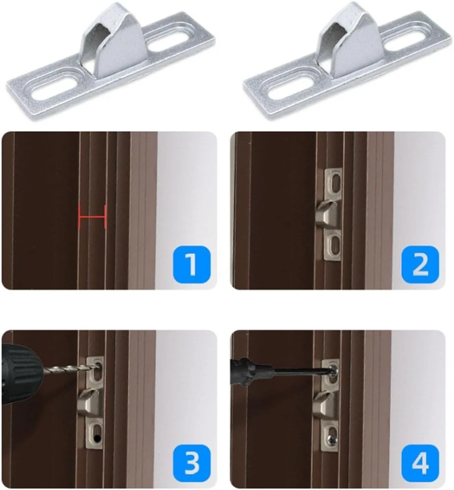 Sliding Door Lock Keeper, 2pcs Sliding Glass Lock Latch with Mounting Screws for Patio Doors (Silver) The sliding door lock latch has vertical screw slots for easy adjustment, easy installation and use of screws. And a friction bump on the back of the base helps to hold the base in place without sliding, improving corrosion resistance, wear resistance and hardness, protecting the metal surface and having good insulation properties. The sliding door keeper is made of high-quality zinc alloy solid metal, and the surface is chrome-plated, waterproof and rust-proof, stable, wear-resistant, strong, not easy to deform, not easy to rust and corrosion. Good workmanship, longer use time and higher efficiency. Sliding door handle keeper is easy to install with no sharp edges, just use the included 2pcs mounting screws to secure it for safety, simple and refined, perfect for modern homes, and treated surfaces to make it more attractive. You will receive 2pcs sliding door locks and 4pcs screws, enough to meet your daily use and replacement needs, but also to share with friends and family who need to update the sliding door keeper. It can be installed and removed with a screwdriver, which is very convenient.