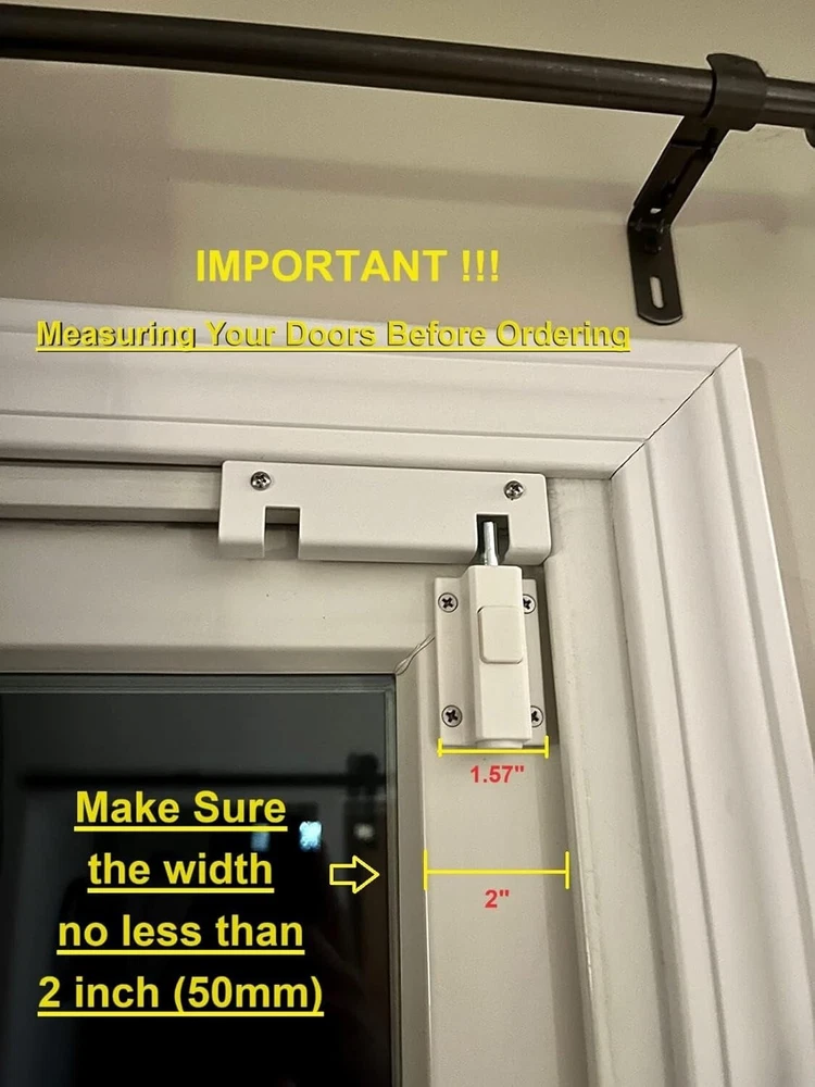 Sliding Door Security Lock Sliding Patio Door Lock for Glass Doors Child Safe Size Name: Sliding Glass Door Lock Addtional Extra Security to Your Home. This sliding door lock designed to offer additional home security from a patio door or sliding window, provide peace of mind at night to keep everyone safe in side, use this when you leave home when you travel, also peace of mind for when you are gone Security and Safety for Kids. Our security door lock is great to put on sliding door that leads to the pool, and vinyl sliding glass patio door, no more worrying about if the little ones open the door run outside, and head for the pool when you weren't looking Easy to install and 2 Ways for Installation. You can put this lock on the top of door to prevent the toddlers opening the door by themselves. Add it on the bottom of sliding door or window, you can lock or unlock by your foot, so you no longer have a bend down to lock or unlock your patio door 2 Positions to Lock. Our patio door lock designed 2 positions to lock your sliding glass door or window, so you can leave the patio door or sliding glass window slightly open and still lock it Risk Free Shopping. Our security door locks made of long lifetime material, and durable, so that it stays with you long times, or we’ll replace it hassle-free at no charge to you Return Policy: We offer a 30 day return policy from the receiving date. Please contact us for a Free Return Label. Please use our return label so it will go back to our supplier and we can do a refund or replacement afterwards. Feedback: Your satisfaction is very important to us! If you have any problem with your order, please contact us and we will do our very best to make you satisfied. As long as you are happy with your purchase, please leave a positive feedback for us. We will always leave you a positive feedback in return. If you have any problem with your purchase, please do not leave a negative feedback. Please Contact us ... and your issue will be solved quickly and positively We are a small family-owned business trying to make a living, not a huge company that does not care ... We will ALWAYS do our best for you!