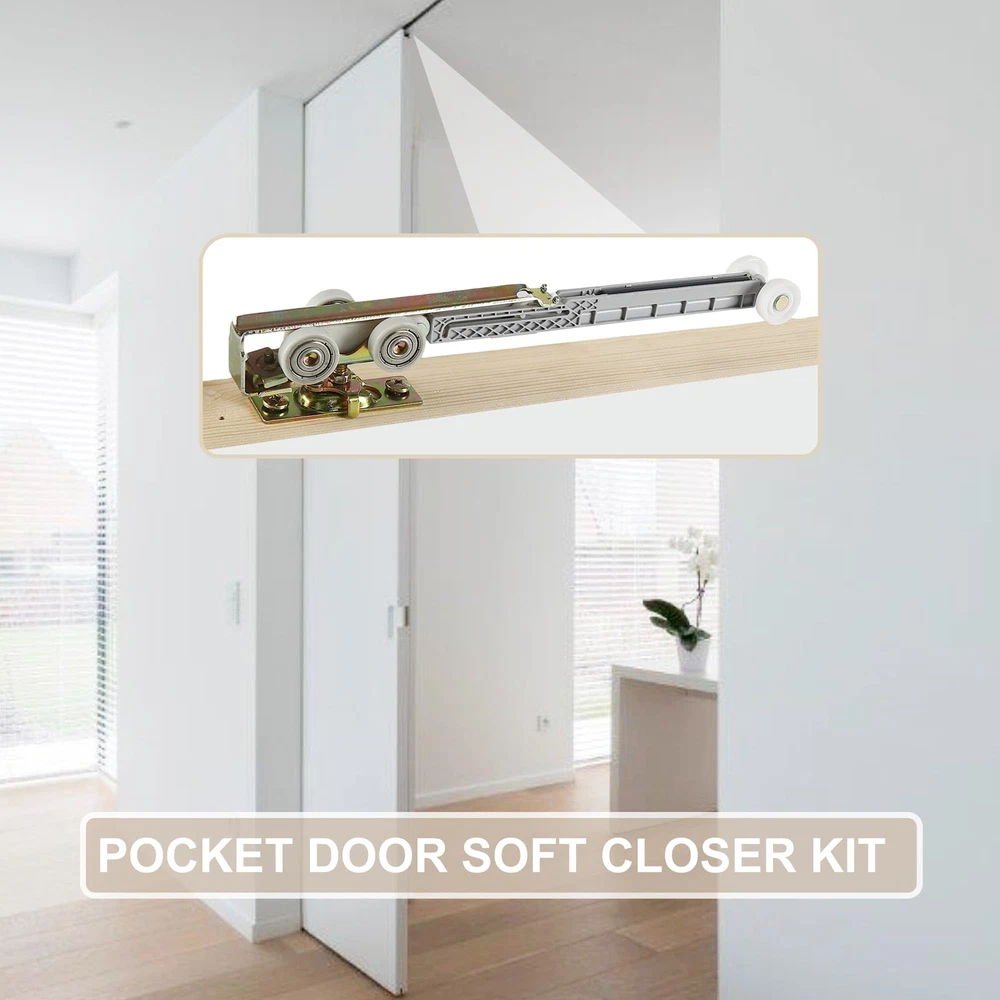 1-inch diameter nylon ball bearing wheels. Perfect for replacing part #1060 hardware kit. For single direction soft close operation, the 1060 must be used in combination with a 1125 door hanger. Compatible with 100, 134F, 138F, 2610F Series Track and 1500, 1560, 1562, 2710 Series pocket door frame. Package Includes: 1 top door hanger with soft closer assembly, 1 track metal bracket, 1 door stop, 1 wrench and 1 screw pack.