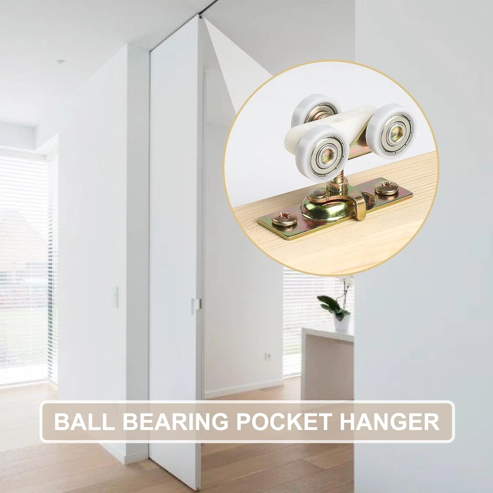 1-Inch Dia. Nylon Ball Bearing Wheels. Fits Part #1125 and Replaces #1500 Hardware Kit. Compatible with 100, 134F, 138F, 2610F Series Track. Replacement Part Set for Johnson 1500/100PD Series Pocket Door Frames. Package Includes: 2 top hangers, 2 door guides, 1 door stop, 1 wrench and 1 screw pack. Product Description