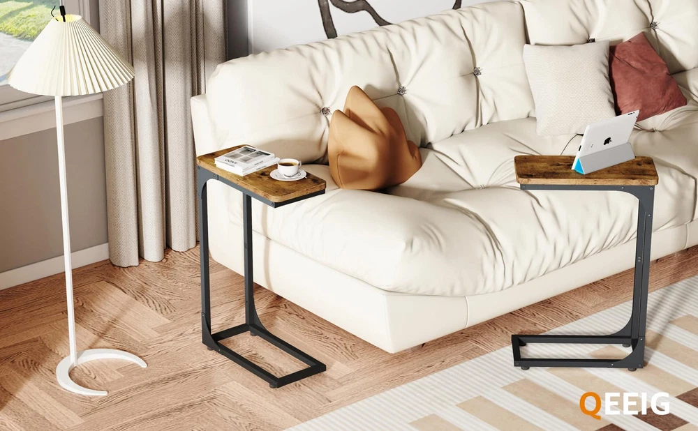 Perfect for small spaces! These slim C-shaped side tables slide right under the couch, giving you extra surface without taking up room. They hold up to 20 lbs and stay sturdy, so drinks, books, or laptops stay secure. Super easy to assemble—had them ready in minutes. Game-changer for my cramped living room! No more awkward bending to reach things. Love the modern look too.