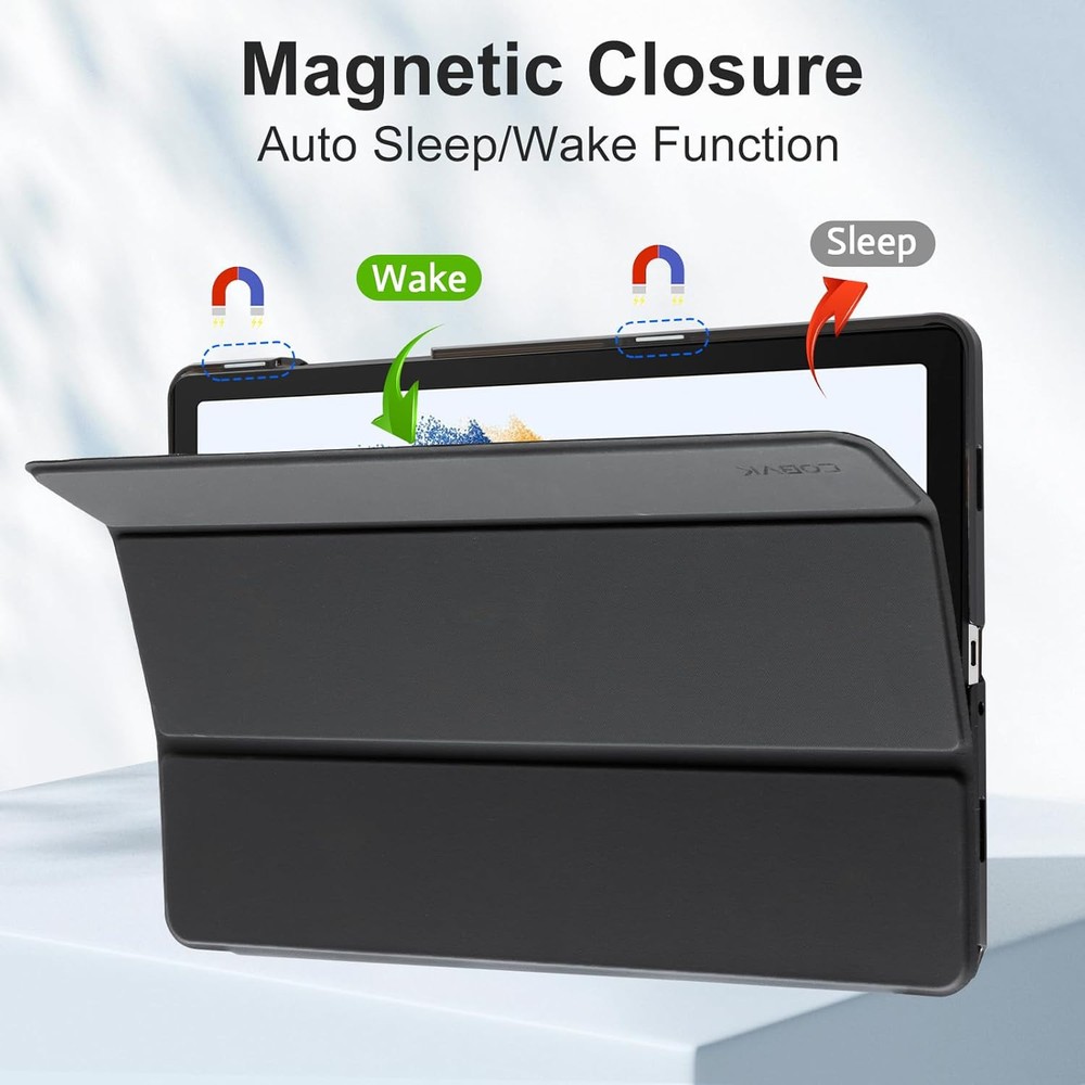 CoBak Case for Samsung Galaxy Tab A9 Plus 2023, Slim Stand Hard Back Black-TF Product Details Package Dimensions: 10.39 x 7.44 x 0.71 inches Item Weight: 8.8 ounces Special features: Auto Wake/Sleep Form Factor: Cover Color: Black-TF Manufacturer: CoBak Brand: CoBak Compatible Devices: Tablets Shell Type: Hard Fit: Perfect cutout and shape, specially designed for Newest Samsung Galaxy Tab A9 Plus 10.9-inch 2023 Released. AUTO WAKE/SLEEP: With the built-in smart cover,your tablet will be woke up or put to sleep seamlessly. Magnetic Closure: The magnetic design helps the tablet cover close securely, providing a 360 degree protection for your device. MATERIAL: Features the premium waterproof PU leather exterior, Special anti slip material interior and 100% PC case. This will definitely be a perfect choice of Samsung Galaxy Tab A9 + for you. Lightweight and Travel-friendly:Lightweight case gives your device maximum protection without adding extra bulk.Put it in your bag and you can enjoy reading anytime and anywhere. Reliable and Durable: Meticulously constructed with top-tier quality materials, our product exudes reliability and durability, ensuring your purchase is a confident choice.
