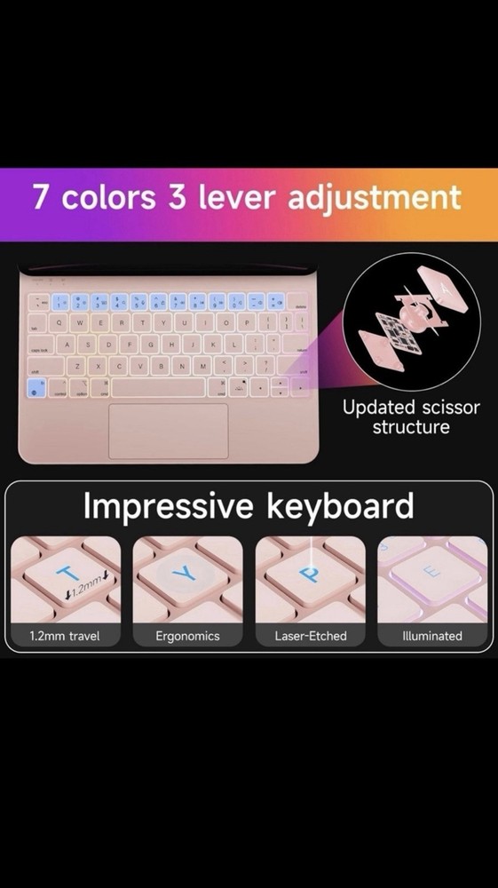 HOU Keyboard Case for iPad Air 11 inch 2024 (M2)&iPad Air 5th Generation Case with Keyboard(Air 4th),iPad Pro 11 Inch (4th/3rd/2nd/1st) Gen 2022,Magic-Stand,AG Glass Trackpad,7 Colors Backlight, Pink Compatibility The only compatible with iPad Air 11 inch 2024 (M2)& iPad Pro 11 inch (4th/3rd/2nd/1st gen) & iPad Air 10.9 “(5th/4th gen), models include 2022 11 inch Pro 4th Ge (A2759,A2435,A2761,A2762), 2021 iPad Pro 3rd Gen (A2301, A2456, A2460), 2020 iPad Pro 2nd Gen (A2228, A2068, A2230, A2231), 2018 iPad Pro 1st Generation (A1980, A2013, A1934, A1979), 2022 iPad Air 5th Gen (A2591/A2588/A2589), 2020 iPad Air 4th Gen (A2072, A2316, A2324, A2325). Please check the bottom of your iPad on model number Axxxx before purchasing. Precision Multi-Touch Trackpad 2023 Upgraded full-area click and integrated multi-touch trackpad made by “etching process” and powerful linear motor,allows you accurately control your iPad pro 11 with different gestures such as scrolling, swiping, and tapping,as we