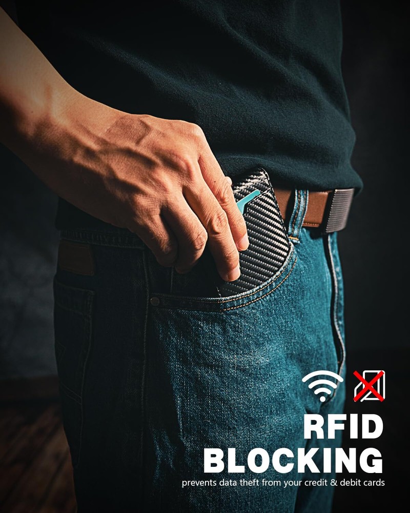 Premium Carbon Leather with Lifetime Guarantee - Crafted from vegan leather, our bifold wallet combines exceptional durability with comfort. Backed by a lifetime guarantee, it won’t wear out or peel. Invest in lasting quality with No Money Clip Design - Metal clips can damage cards and add bulk. We’ve replaced the clip with a cash compartment to keep the wallet slim and protect your cards Slim Wallet for Men - Measuring 4.3 x 3 x 0.5 inches, this bifold wallet holds up to 11 cards and 15-20 bills. Its ultrathin design fits perfectly in your pocket, making it ideal for everyday use RFID Blocking Function - Designed by a German designer and crafted from premium leather, this wallet is durable, wear-resistant, and scratch-resistant. It blocks the 13.56 MHz band to protect against data theft from RFID scanners Perfect Gifts for Him - This bifold wallet comes in a classy gift box, making it an ideal present for birthdays, anniversaries, Valentine's Day, Father's Day, Christmas, and other special occasions