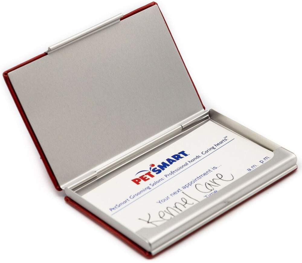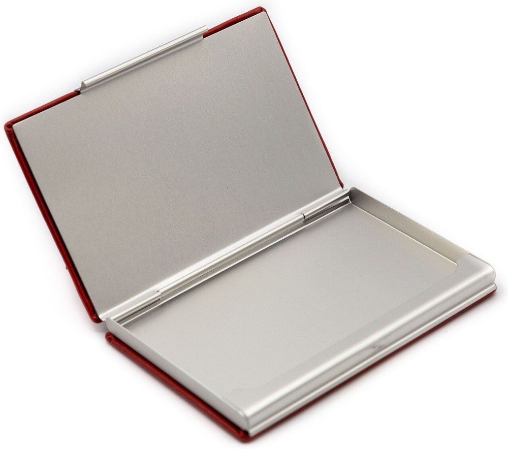 Made from faux leather and soft embossed in smooth, lizard and crocodile prints in black, brown or red colors. Keep your business cards safe with this compact business card holder that holds between 1520 business cards, credit cards and ID cards. Easily opens with a unique snap open design that is constructed from durable nickelplated stainless steel. Stephanies large collection includes business card holders in leather, gold and silver metallic finishes. Please see our other business card listings for more options.