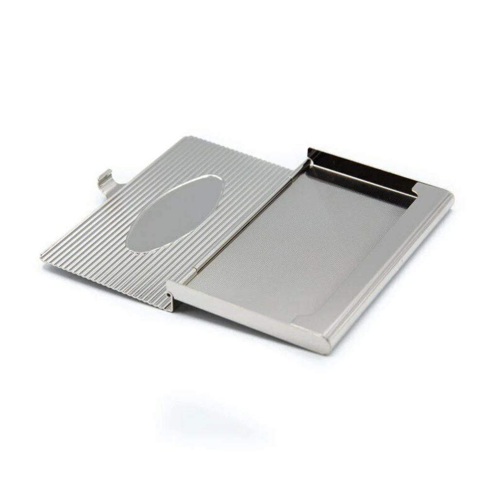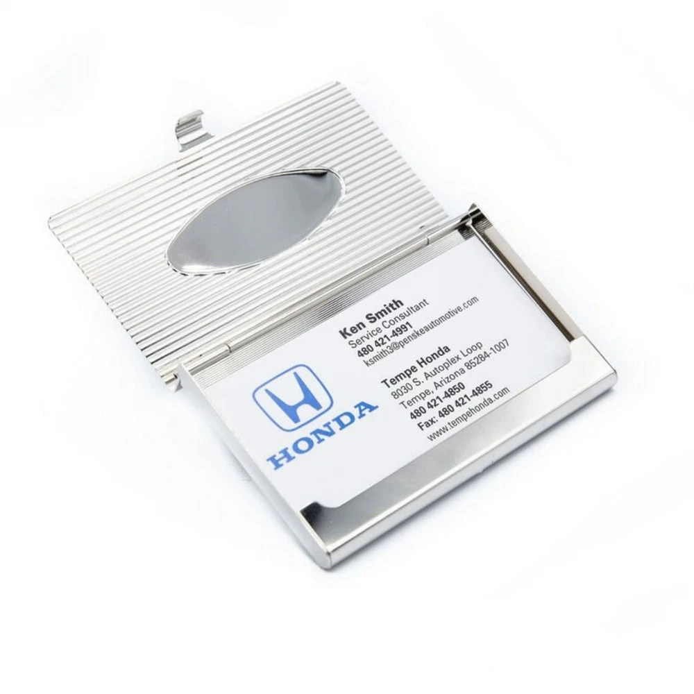 Simple, Sleek and Luxurious Chrome Silver Business Card Case/Holder In Business & Executive world, a business card defines who you are. Sadly Professionals & Business people tend design an impressive card but totally neglect the delivery of the card. Can you imagine meeting and networking with other Professional & when it's time to exchange Business Card, they pull out a Dirty Raggedy Card out their pocket and hand it to you. A card that is suppose to DEFINE who they are. How would that make you feel? Like..you NEVER want to business with that person again! Your cards deserve an impressive Professional Carrying Case -- which will work to Impress your Prospective Client or Business Contact and leave a great first impression. Large Capacity & Lightweight Color: Retro Plated Silver Weight: 2.88 ounces (0.18 lb ) Size: 3.8"L x 2.6"W x 0.3"H Material: Premium Steel Capacity: 10-20 standard business cards Advantage: Slim & Small Design for Convenient Carry Ideal Choice to Keep Your Calling Cards Well Organized & Protected Large capacity, holds about 10-20 business cards depending on the thickness of business cards. Sleek and slim design, easy to handle, carry and store. Premium metal with a combination of high polish and satin finish, the "polished" side could also serve as a mirror. Designed to protect and organize your cards, keep your business cards in good condition without bending and ripping. Perfect edges are been made to ensure suit in your pocket, bag, briefcase. Lightweight does not bring any extra burden to your pocket. Elegant and refined business cards for both Men & Women. Durable & Long Lasting Send this card holder to your friends, families or clients as a gift.