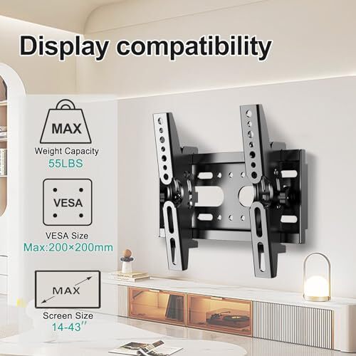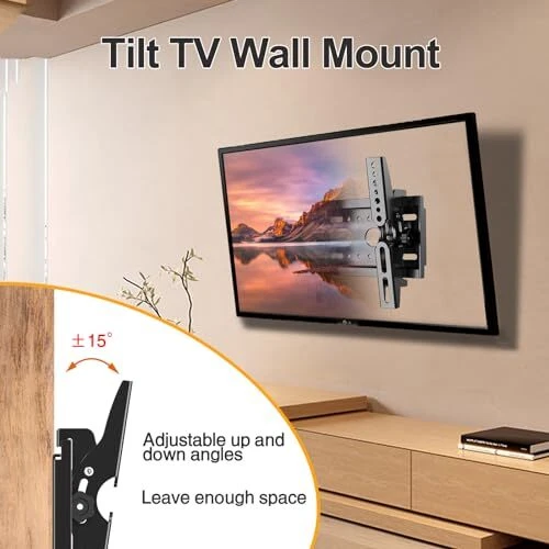 This tilting TV mount was super easy to install—even for a beginner like me! The low-profile design looks sleek, and the adjustable tilt is perfect for reducing glare. Holds my 32-inch TV securely with no wobbling. Fast shipping and great customer service—definitely recommend!