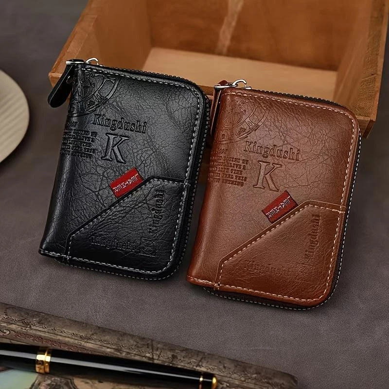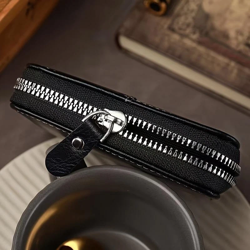$ 8.45Slim Multicolor Leather Zipper Wallet for Men - Credit Card Holder