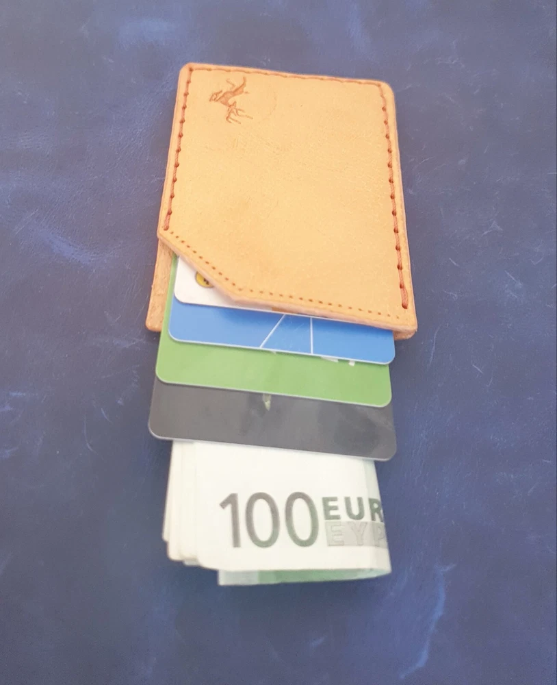 Classic handmade leather card holder. High quality vegetable tanned leather with a thickness of 1.5 - 2 millimeters thick (4 - 5 oz). Two slots for bank cards and folded cash. It is possible to personalize the product. Add your name or text. Engrave your company logo or other image. Please discuss in advance if a specific text or picture is available. Size: 93mm × 66mm / 3.7 in × 2.6 in Weight: 20g./ 0.705 oz. Color - natural, beige. Each product in the photo is a product completely created in the Craft KRK Krakow workshop in Poland. Similar models available. Other colors. Welcome to my needlework store. Note: The color of the product you see on the screen may differ slightly from the color in person due to various factors: Individual screen settings on your phone or computer. The time and place of the product shooting: a photo on the street on a sunny day will differ from a studio photo or a photo from the workshop, a photo on your phone differs from a photo on a professional camera. The difference in the leather batch itself - during the manufacture of the leather material itself, the tone of each batch may differ by half a tone up or down, which is due to the production process itself. We receive the finished color from the leather manufacturer. In case of significant differences in color, we will notify you and coordinate the order.