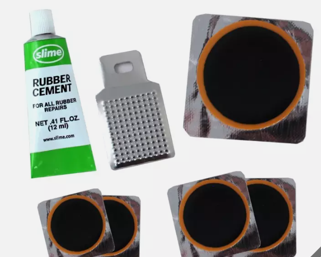 Slime Seven Piece Bike Inner Tube Patch Kit - 1022-a - Free shipping Product details Repair puncture-related flats in tubes easily on bicycles, lawn mowers and wheelbarrows with our 7-piece tube patch kit. The kit contains everything you need to patch a tube puncture. (2) 1 inch diameter rubber patches in silver metal backing (2) 1.25 inch diameter rubber patches in silver metal backing (1) 2 inch diameter rubber patch in silver metal backing 1 Metal scuffer 1 Tube of rubber cement (.41 oz) About this item Repair puncture related flats on ATVs, mowers, bicycles and wheelbarrows Includes 5 Slime rubber patches, one scuffer, and a tube of rubber cement! Everything you need to quickly patch up a puncture! For use with inner tube tires only.