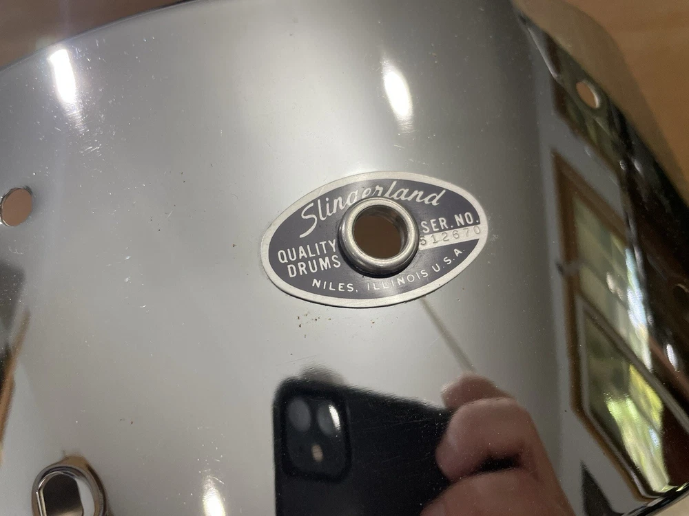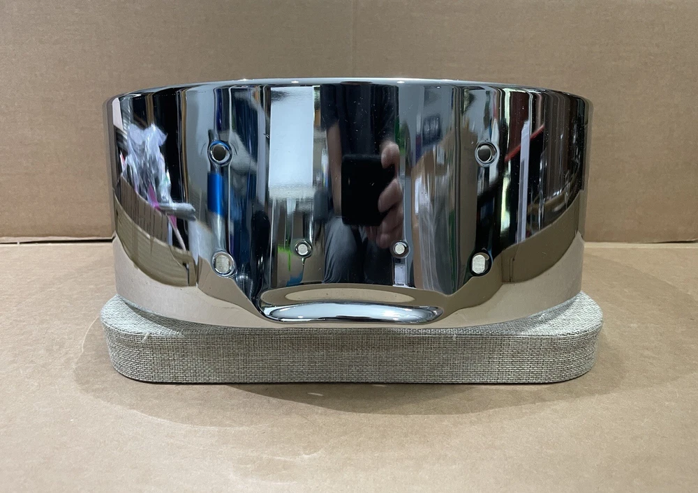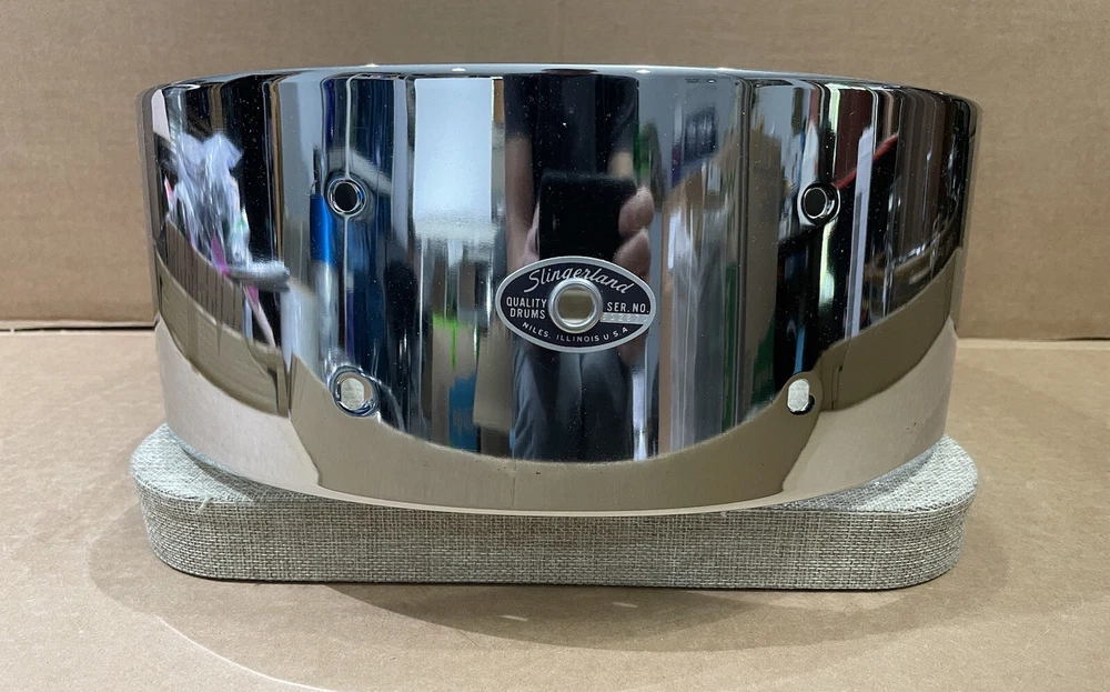 Slingerland 70s Vintage Snare Drum Shell 5x14 chrome over steel. Very good condition overall. Nothing more than some very minor scratches. Drilled for 8 lugs. No extra holes. It’s in round.