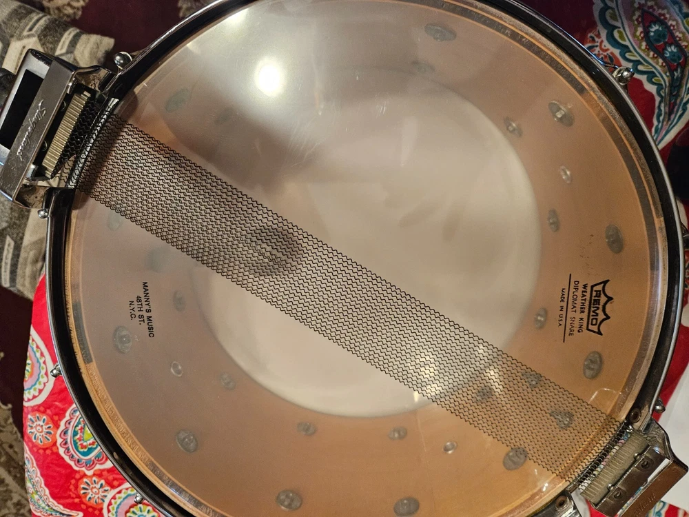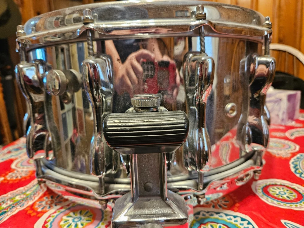 14x7 COW Slingerland Snare drum with slapshot strainer. Collected, never used since purchase 5 years ago, Slapshot strainer functions correctly. Sat on shelf in living room, not even tuned since purchase but still sounds great.