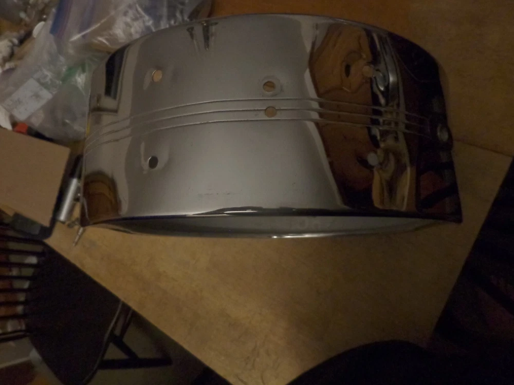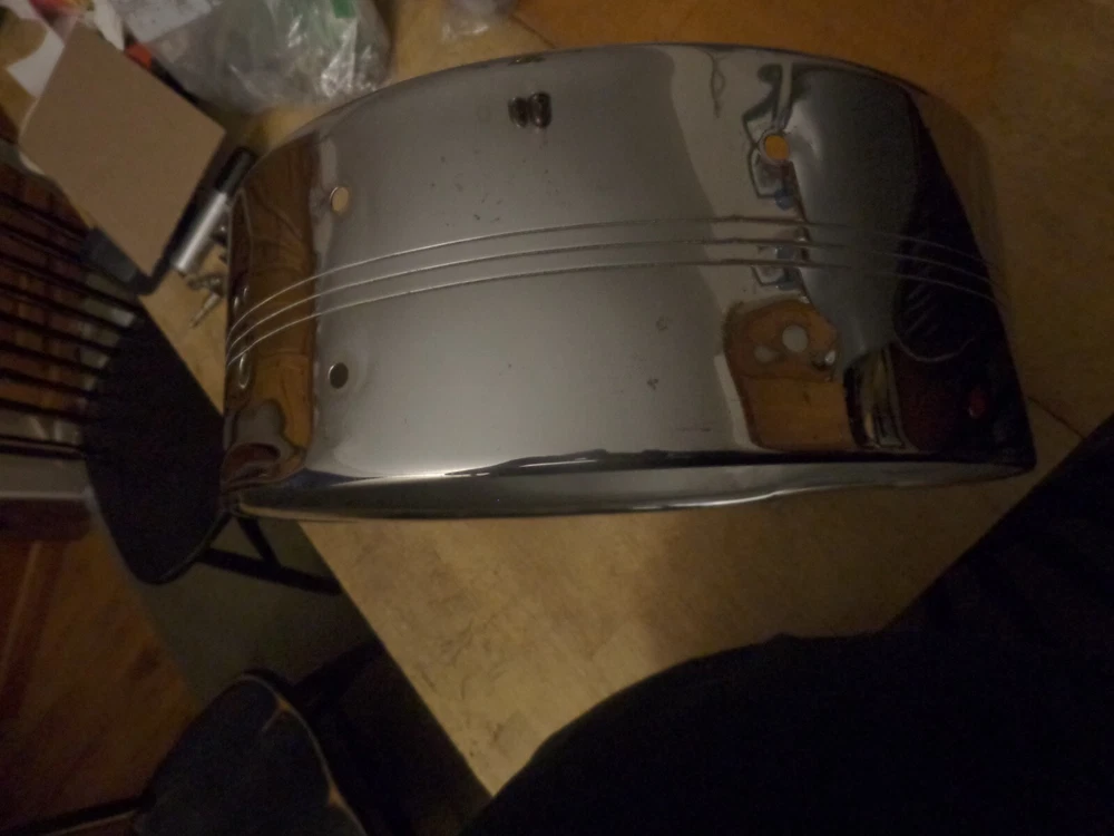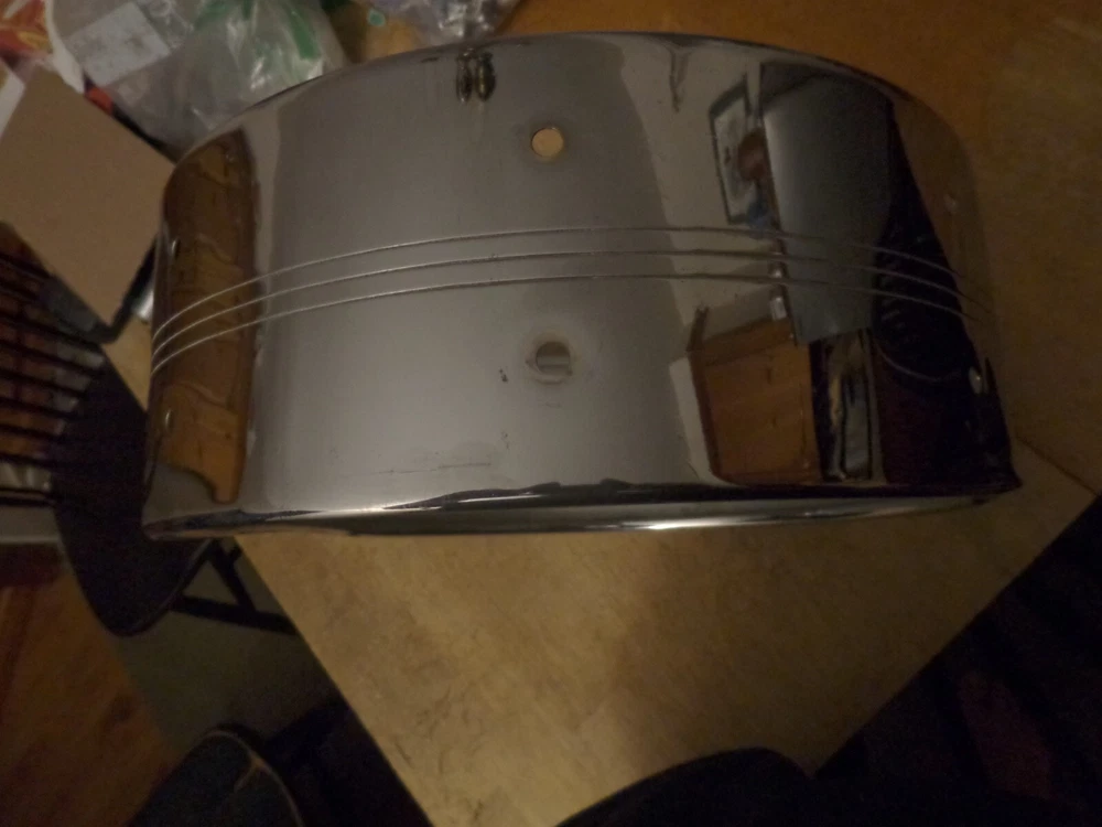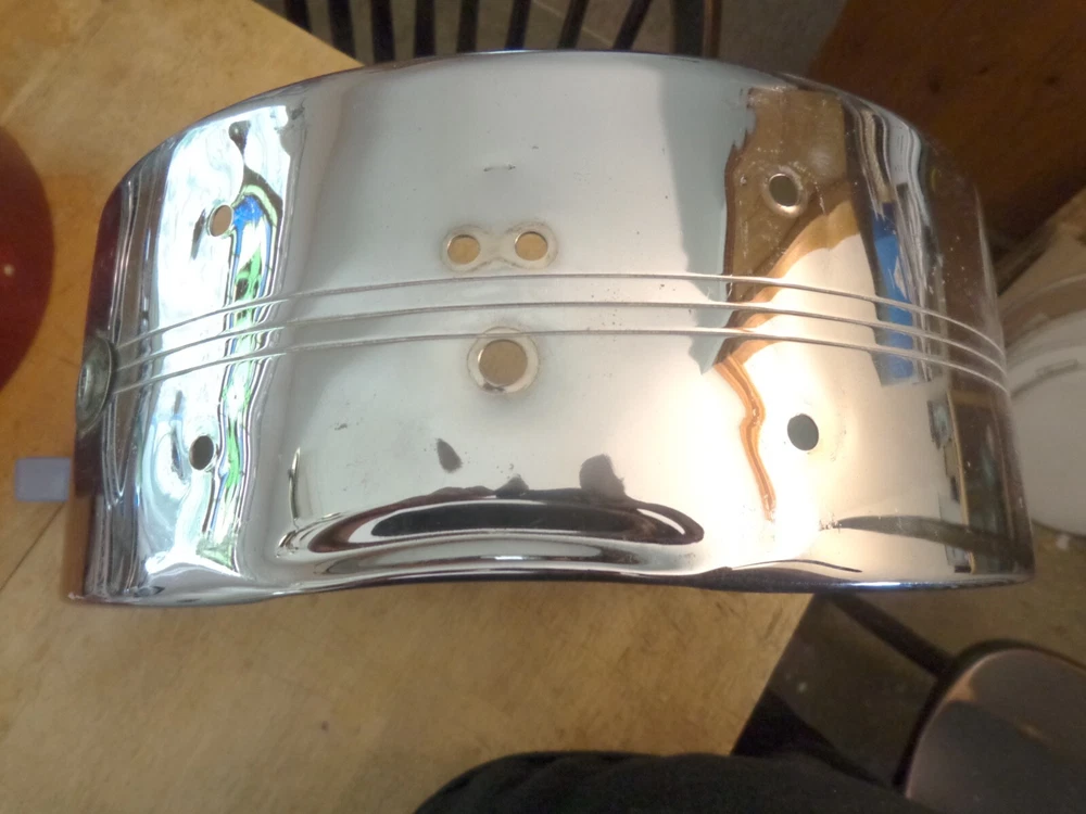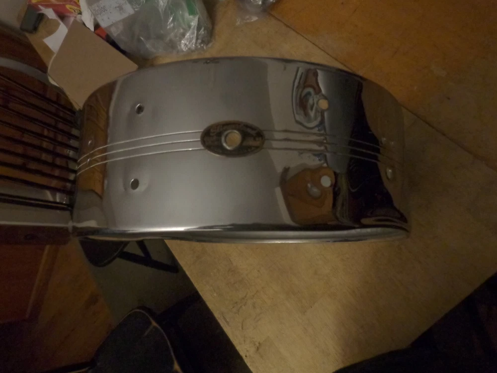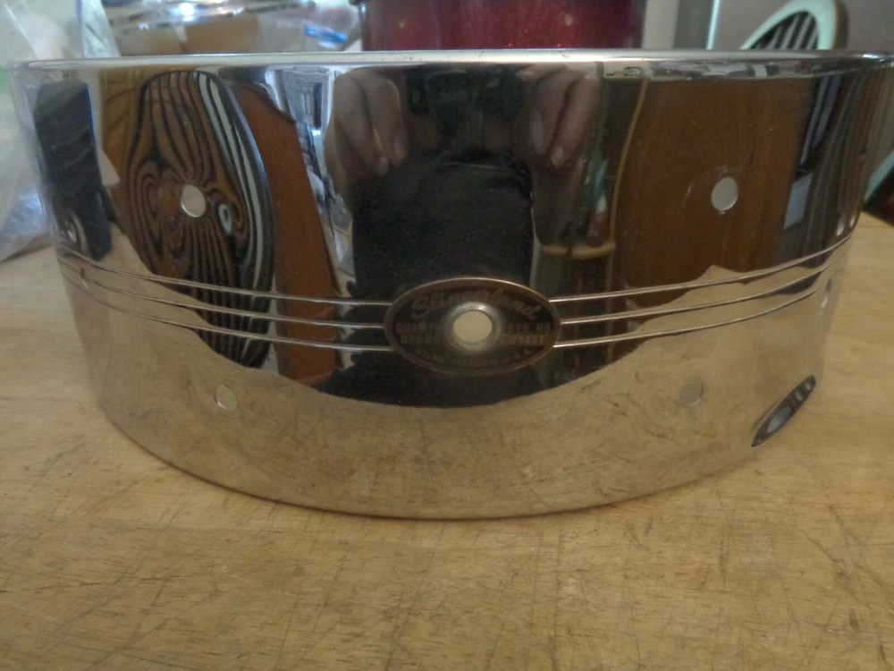 Slingerland Vintage 1960s 8 Lug Snare Drum Shell with Badge Gene Krupa Sound King Model #130. 14 inch diameter by about 5 inches deep. Nice condition, with some typical chrome wear from use . In round, no extra holes. Please see my other listings. Combined shipping available. Will ship worldwide.