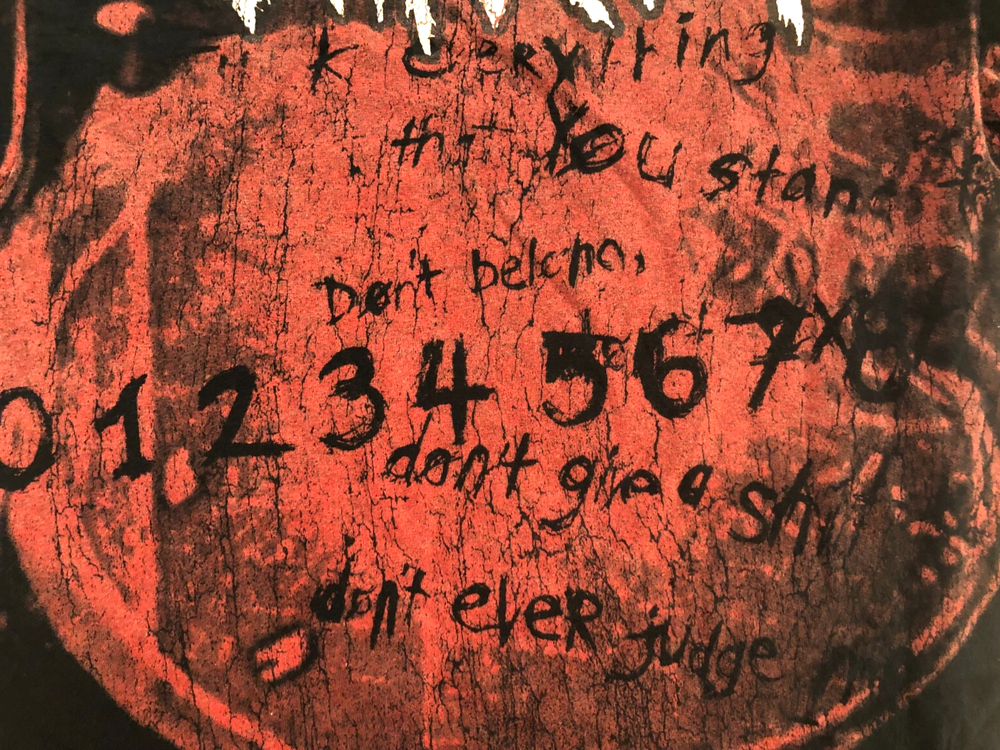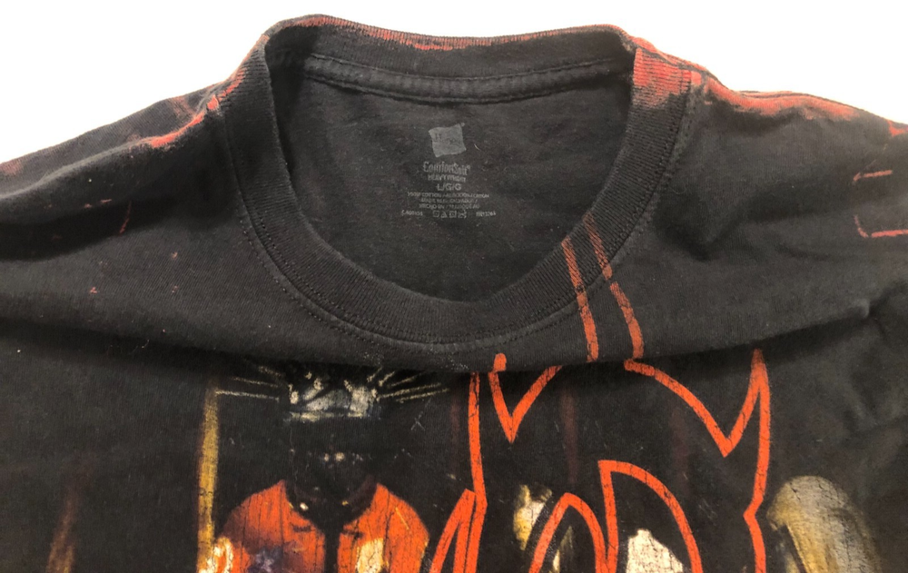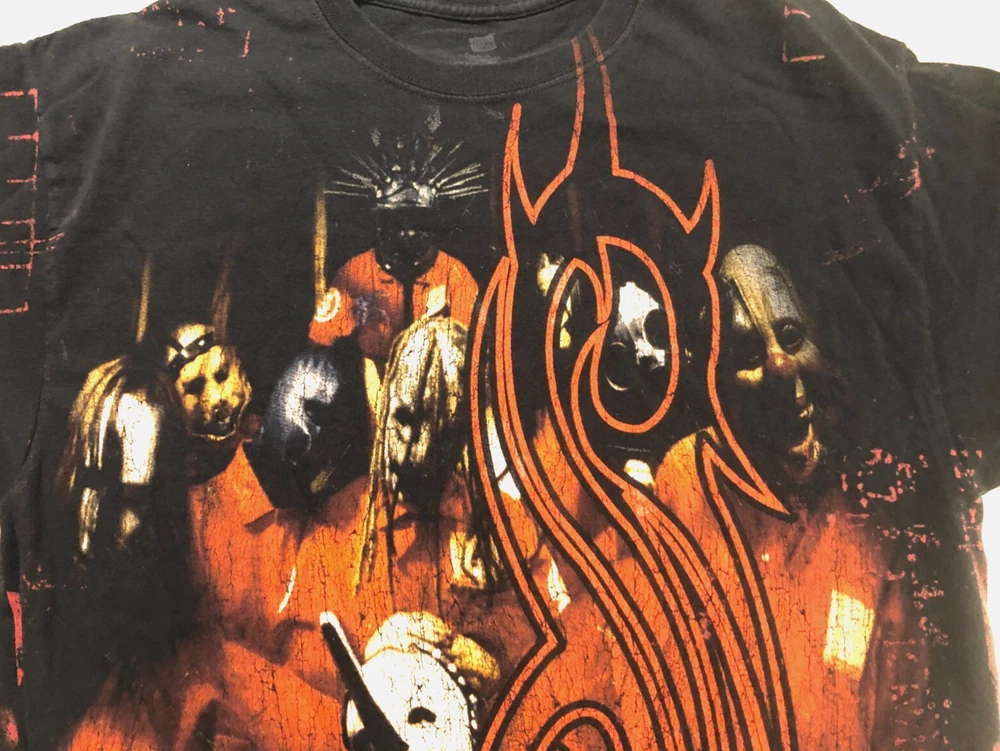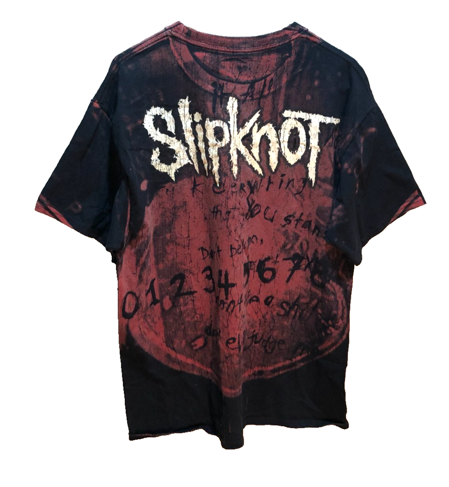 The Slipknot Don't Judge Give Sh_t Two-Sided Heavy Metal Vintage 90s Black T-Shirt in size L is a graphic print shirt featuring the band Slipknot. With a crew neckline and short sleeves, this regular fit T-shirt is perfect for fans of music and the 90s. Made by Hanes, this unisex shirt is a bold statement piece for anyone looking to showcase their love for heavy metal music. Original Hanes Slipknot "don't give a sh_t, don't ever judge" Double Stitch T-Shirt *100% Cotton *Color: Black *Screen-printed Size: Adult L Measurements Approximately: *Armpit to Armpit 20" *Shoulder to Hemline 29" *Shoulder to Shoulder 19.5" Condition: Pre-owned.