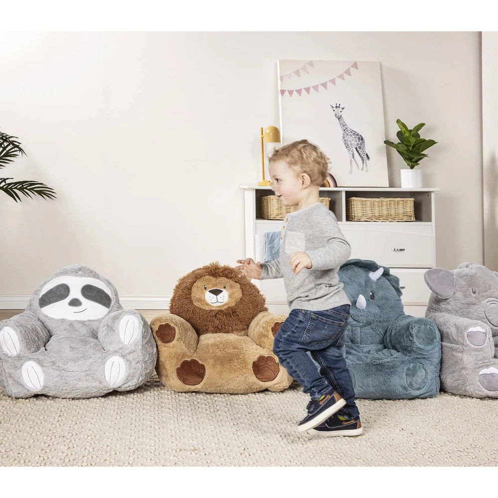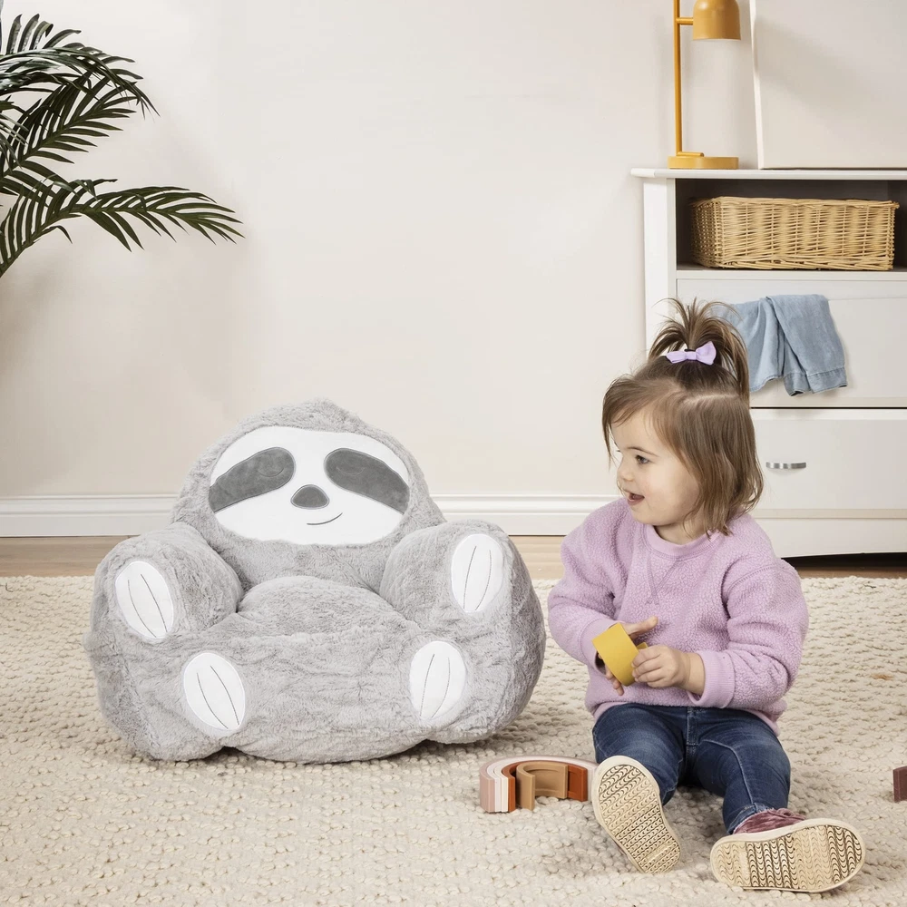 Add some cuteness to your little 's world and to any room of the house with the Plush Sloth character Chair by Trend Lab. The Sloth chair is a cuddly companion for reading, relaxing and snuggling thanks to its perfect size, soft plush and contoured support. An additional pocket on the side for convenient storage for books, blankets or toys. The sloth's "fur" Is a soft gray, with an adorable white Sloth face and paws, and dark gray around the eyes and on the bottom of the feet. Add some cuteness to your little 's world and to any room of the house with the Trend Lab Plush Character Chair A cuddly companion for reading, relaxing and snuggling thanks to its perfect size, soft plush and contoured support Features a convenient handle on top of chair back to move this sofa chair easily from room to room Additional side pockets on this armchair are convenient storage for books, blankets and toys plush chair intended for -aged children 1-3 years of age who can sit unassisted; Measures 16 inches deep x 16 inches at base (20 inch at arm rests) x 19 inches tall with 11-inch seat depth