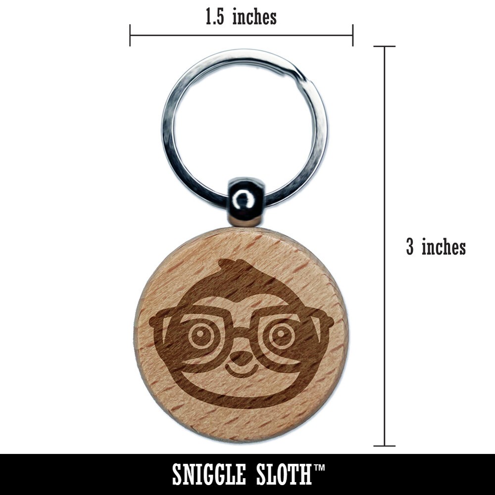 Sloth Wearing Glasses Engraved Wooden Keychain Charm Tag