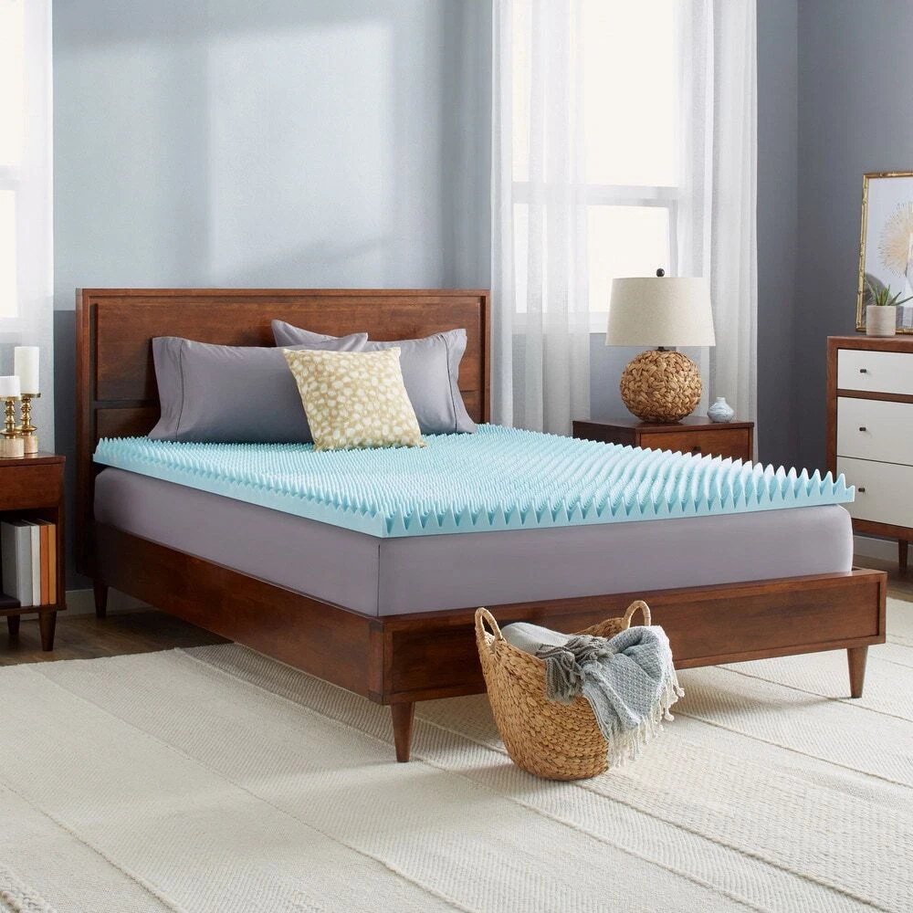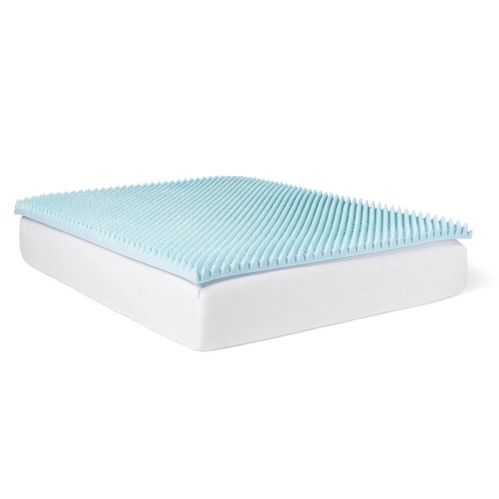 Get the restful night's sleep you deserve with the Slumber Solutions memory foam mattress topper. The gel memory foam creates a luxurious cradle for your body while reducing pressure points and dispensing your weight evenly. This three-inch mattress topper adjusts to your body's temperature and draws warm air away, offering a customized sleeping experience.Features:Gel memory foam mattress topper will quickly update your bedCradles your body and reduces pressure pointsAdjusts to your body temperatureDraws uncomfortable warm air away from your bodyOpen nature of textured side provides improved air flowEliminates motion transfer and disperses your weight evenlyHelps rejuvenate tired muscles and eases back painMeets all flammability standardsDetails:Brand: Slumber SolutionsMeasures: 3 inches Free Shipping Over $49.99* Details Slumber Solutions Gel Highloft 3-inch Memory Foam Mattress Blue Product Description: Get the restful night's sleep you deserve with the Slumber Solutions memory foam mattress topper. The gel memory foam creates a luxurious cradle for your body while reducing pressure points and dispensing your weight evenly. This three-inch mattress topper adjusts to your body's temperature and draws warm air away, offering a customized sleeping experience. Features: Gel memory foam mattress topper will quickly update your bed Cradles your body and reduces pressure points Adjusts to your body temperature Draws uncomfortable warm air away from your body Open nature of textured side provides improved air flow Eliminates motion transfer and disperses your weight evenly Helps rejuvenate tired muscles and eases back pain Meets all flammability standards Details: BrandSlumber Solutions Measures3 inches thick Density3.2 pounds Dimensions Twin37 inches wide x 73 inches long Full52 inches wide x 73 inches long Queen58 inches x 78 inches King75 inches x 78 inches California king70 inches x 82 inches Memory Foam Tips To maximize memory foam expansion; remove from packaging within 72 hours of receipt. This product arrives very tightly packed. Please unwrap and allow 48 hours for this product to return to its original shape. Being sealed in plastic packaging sometimes traps odors. A few hours of airing usually removes the odor. Due to machine cutting manufacturing processes, there may be slight variances in the dimensions of this product. Due to the nature of Memory Foam the firmness level of every item is unique. Topper dimensions may be slightly smaller than your mattress dimensions. Size has been designed to allow you to easily secure your fitted sheet over your new memory foam topper.