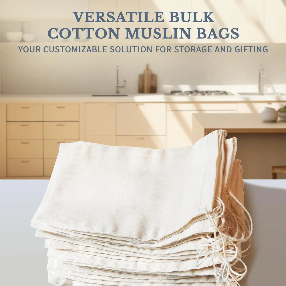 Our all natural cotton muslin drawstring bags are made in America. They are made from fabric woven domestically. The cotton is virgin and the chemicals used in weaving contain no toxic substances. The bags are measured pre-sewn. There may be a variance of up to 1/8 to 1/4 inch due sizing / natural shrinkage. Please allow a little extra room for cinching and expansion. Great for all-purpose packaging: crafts, soap, herbs, teas, gifts, wedding favors, holiday decoration gift bags, packaged treats, parts bags. You Name It! These are great for culinary use herb /spice bags... but as they are made in a factory they should be washed / sanitized before use direct food contact. Natural medium weave cotton will shrink when washed. Reusable hint: wash separately or strings will tangle. If used for treat bags best if treats pre-wrapped. These are perfect for home crafters and will give your product a natural look. You can stamp, iron-on, or professional print your name/logo on them. These can be dyed your favorite color. Other uses include: airline / automotive / hardware industries as parts bags. These are just a great all-purpose cotton muslin drawstring bag. PREMIUM QUALITY CRAFTSMANSHIP: Discover ' USA-made Cotton Muslin Bags with Drawstrings, meticulously crafted from 100% premium-quality cotton. These durable and soft bags are perfect for storing small items like soap, herbs, spices, or potpourri. Experience exceptional durability and versatility with our reusable muslin bags, proudly made in the USA. CONVENIENT AND SECURE: Enjoy the convenience of our Cotton Muslin Bags with Drawstrings, featuring a secure drawstring closure for easy access. Whether you need a soap bag, produce bag, or a small drawstring bag, these versatile muslin bags keep your items safe and clean. Experience practicality and functionality wherever you go with our reusable cotton muslin bags. LONG-LASTING SUPPLY FOR ALL YOUR NEEDS: provides a generous supply of natural-colored Cotton Muslin Bags with Drawstrings, proudly made in the USA. Available in bulk, these multipurpose bags cater to all your storage and gifting needs. Customize them to create unique gift bags, tea bags, spice bags, or cloth gift bags. Embrace the abundant quantity and exceptional quality of our reusable cotton muslin bags. PERFECT SIZE FOR EVERY OCCASSION: Elevate your organization game with ' Cotton Muslin Bags with Drawstrings, proudly made in the USA. These versatile bags come in a size suitable for a range of purposes. Ideal for jewelry, crafts, small gifts, or organizing small items, the breathable cotton muslin material ensures proper air circulation. Choose these high-quality drawstring bags and experience practicality and charm, proudly made in the USA. ENDLESS POSSIBILITIES, TIMELESS CHARM: Embrace the versatility and charm of ' Cotton Muslin Bags with Drawstrings, proudly made in the USA. Perfect for jewelry, herbs, spices, fruit, candies, or small gifts, these bags elevate your storage solutions. Whether used as muslin gift bags, small cloth bags with drawstrings, or reusable cotton pouches, these delightful muslin bags offer endless possibilities.