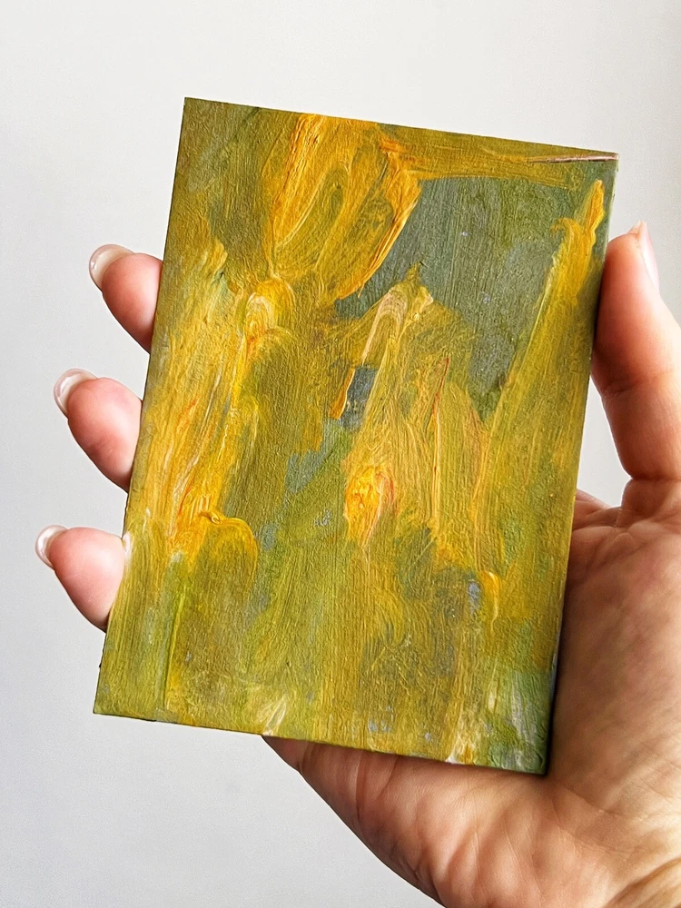๐ŸŒฟ Abstract small painting. 100% hand painted original signed artwork. Acrylic miniature art. OOAK modern contemporary artwork original wall art & shelf decor. ๐ŸŒฟ Original author's small acrylic painting on cardboard . Unframed. ๐ŸŒฟ Size: 8x11.5 cm / ~ about 3.5x4.5 inches . ๐ŸŒฟ Signed from the back by Kateryna Oliynyk . ๐ŸŒฟ Materials: acrylic paints , cardboard ,. Unframed . Need a decorative frame. Or you can use a small stand/miniature easel. ๐ŸŒฟ Please note that colors may vary depending on screen and camera settings. ๐ŸŒฟ Combined shipping is available. You can choose similar abstract miniatures in the shop section "abstract art". The new abstract collection contains many beautiful miniatures.