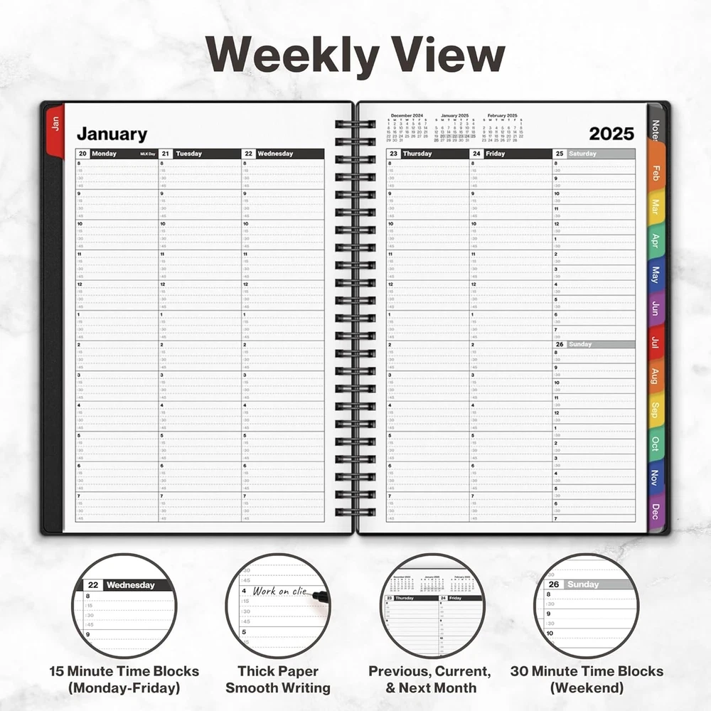 Store New Arrivals Add to Favorite View Feedback Contact Fast deliveries to the customer's home Quality customer service John Make the customers happy! Small Appointment Book 2025, 6X8" (Colorful), Jan - Dec 2025, Quarter Hourly Schedule Book, Daily Planner with Monthly Tabs, 15 Min Slots Description Small Appointment Book: 6 x 8-1/4", 12 Months, Use Jan 2025 to Dec 2025, Dated agenda booklet for time management planning. Compact size. Professional style for work or personal use. Weekly Daily View: Weekday schedule with 15 minute increments, 8am to 8pm; Saturday has 30 min time slots, 8am to 8pm; Sunday runs 8am to 7pm. 3-month reference on top, current week highlighted. Tabbed Monthly View: Two-page spread calendar overview for each month. Ample writing space in lined day boxes, Includes previous and next month, Holidays, Day of the year counters, Notes block. Special Pages: Yearly Overview, Quick Reference, Contacts, Important Dates (birthdays, anniversary, etc.), Holidays, USA Time Zones and State Capitals, 15 pages for Notes in back. Feature Rich: Sturdy poly cover. High quality thick paper. Spiral binding to open flat or fold over. Includes planner stickers, clear 2-sided pockets in back, laminated movable bookmark. Product Description 6x8.25" Appointment Book Scheduler - Colorful Use January to December 2025 Perfect for School, Home or Office Your Choice of Sizes (6x8.25" or 8.5x11") With a compact size of 6x8.25 inches, this smaller Daily Schedule Planner fits easily in backpack, computer bag, briefcase or purse. Or if you prefer a large desktop Appointment Book, the generously sized 8.5x11 version provides ample space for keeping you well organized. Monthly Views: Tabbed overview of each month includes previous and next month, a Notes block, holidays and day of the year counters. Weekly Views: Time management planner shows Monday - Friday, with each time boxed with 15 minute intervals. Saturday - Sunday use 30 minute intervals. Feature Rich Dated Monthly Views Weekly Views with Time Block Intervals Brightly Colored Design Sturdy Poly Cover, Twin Wire Spiral Binding Color Laminated Monthly Tabs Feature Pages (Notes, Contacts, Holidays, etc.) Includes Bookmark and Stickers Smaller 6x8.25" Size Includes Gift Box Feature Rich In addition to many special feature pages (Notes, Contacts, Holidays, etc.) you will also receive a snap-in bookmark and stickers for planners to mark your occasions, events and appointments. Sturdy Construction Constructed with sturdy acid-free poly cover and twin wire binding to lay flat when open. Uses thick paper to avoid ink bleed-through. Incorporates appealing design, similar to the popular Dunwell line of wall and desk calendars. Makes a Great Gift The smaller 6x8.25" book arrives in attractive gift box, ready for gift giving. Stay organized with date books and planners exclusively by Dunwell, the Trusted Name in Office Supplies. Item model number PAPP0608 Sheet Size 6 x 8.25 Inches Calendar Type Hourly, Weekly Format Notebook, Day to Day Calendar, Engagement Calendar, Bookmark Calendar, Organizer Color Colorful Cover Material Plastic Material Polypropylene, Paper Material Type Polypropylene, Paper Manufacturer Part Number PAPP0608 Style 2025 Item Weight 0.33 Kilograms Product Dimensions 8.25 x 6 x 0.67 inches Ruling hourly Year 2025 Target Audience Adult, Professional Size Small ABOUT US We offer the best prices around on high quality products. Our E-store includes media such as books, movies, music and games while offering electronics, toys, sporting apparel, clothing, tools, general home, garden items and more. SHIPPING We are always working hard to ensure your package arrives as soon as possible. Please understand that some factors like weather, high postal traffic, and the performance of shipping companies are outside of our control. We offer free shipping to the lower 48 states and ship within 2 business days of payment, usually sooner. We do not accept P.O. Boxes. Please provide a physical address. For shipping outside of the continental USA, we only use eBay's Global Shipping Program. The item is shipped to KY and then sent to the rest of the world. International customers are responsible for all duties and taxes. Continue to 'check out' to calculate costs for shipping the item to your country. Messages regarding eBay's Global Shipping Program MUST be directed at eBay EXCLUSIVELY. RETURNS We offer a 30-Day Return Policy on items in which you are not completely satisfied with. You have the option of a full-refund or an exchange of the item. No returns are available on items shipped outside of the USA PAYMENT We accept PayPal. CONTACT US This page content is yet to come Please ad us to your favorite seller and visit again later Thank You CUSTOMER SATISFACTION We try our very best to make sure every customer is completely satisfied. If there's a problem, message us! We're happy to help. WE ACCEPT