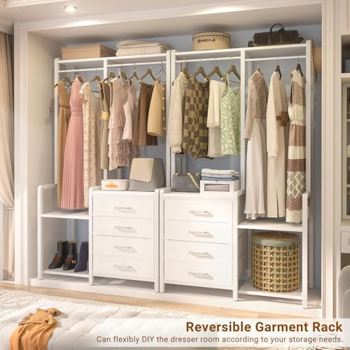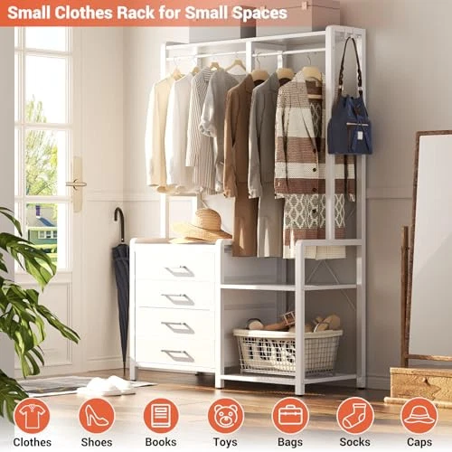 Menu 1. We require immediate payment. 2. We currently accept payment via eBay managed payments only. 3. Once payment is cleared, we will dispatch your shipment within 1-3 business days. Please refer to the "Shipping" tab for more information regarding shipping speed to your destination. Small Clothes Rack with 4 Drawers, Reversible Garment Rack with Storage Shelves & Charging Station, Freestanding Closet System Organizer with 2 Hooks for Small Spaces, White Product description ?Multifunctional Clothes Rack: The clothes rack has a total of 5 different types of storage space, 4 large drawers, 3 storage shelves, 1 t-shirt hanging rod, 1 long dresser/coat hanging rod, and 1 top storage shelf, allowing you to have a variety of storage methods in limited space to keep everything in organize. ?Garment Rack with 4 Fabric Drawers: Compared with wooden drawers, fabric drawers are easier to install, the garment rack has 4 large fabric drawers of 19.7" x 19.7" x 5.5", which provide private space while meeting the large storage capacity, and are very suitable for storing underwear, socks, pants, and other small items. ?Adjustable & Reversible Closet Organizers: The clothing rack is reversible, you can choose to install the drawers at left or right according to your habits. And the storage shelf on another side is height adjustable for stacking clothes, storage boxes or even shoes letting you place items flexibly. ?Small Clothing Rack with Charging Station: Small clothing rack (39.4" x 19.7" x 71" ) is a compact size it's perfect for small spaces, ideal to place beside the bed, and the charging station with 3 outlets and 2 USB ports is convenient for charging your phone, iPad. Attached 2 additional hooks that can be used to hang accessories like hats, scarves and belts. ?Easy Installation: The small closet rack is stable, solid, and easy to install, come with clear manual instructions, if you have any trouble installing our closet rack with drawers, or if you receive a damaged item, please feel free to contact us and we will solve the problem for you. PLEASE MESSAGE US IF YOU HAVE ANY OTHER QUESTIONS, AND MANY THANKS FOR READING ALL OF THIS. Copyright ©#. All Rights Reserved.