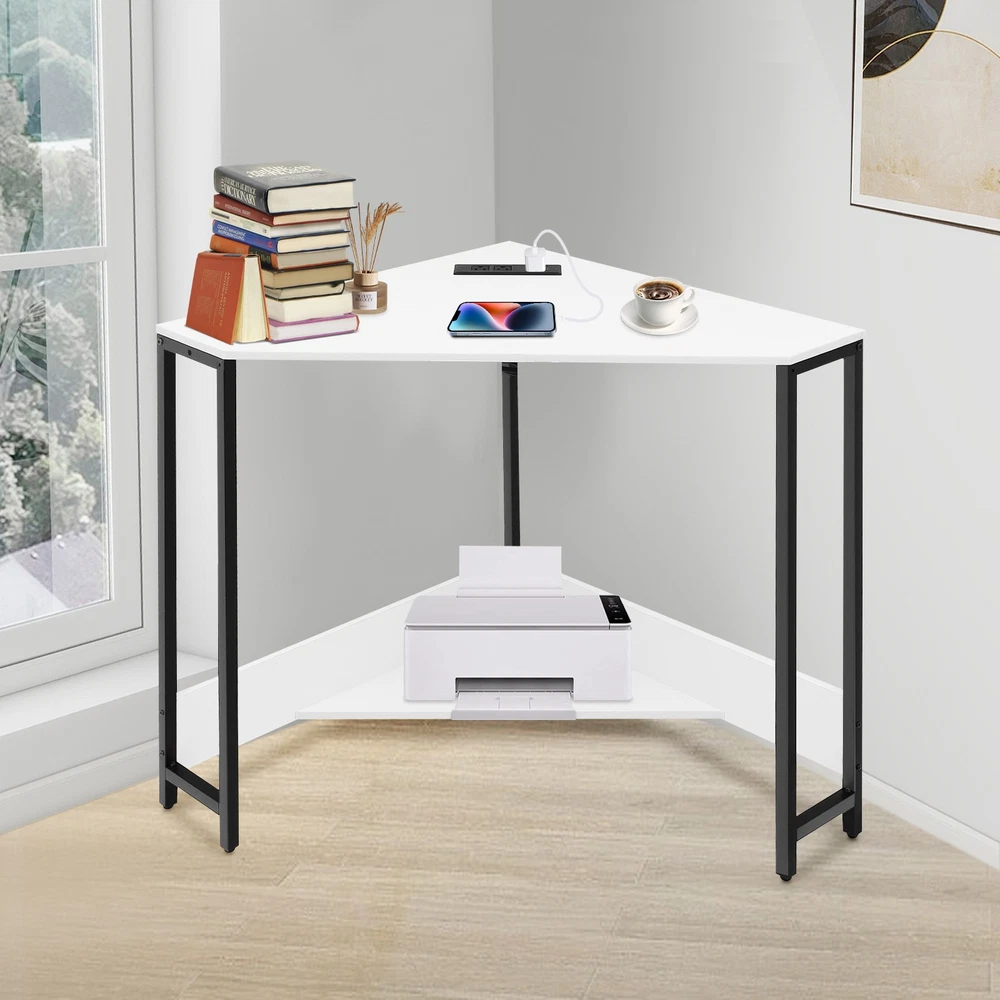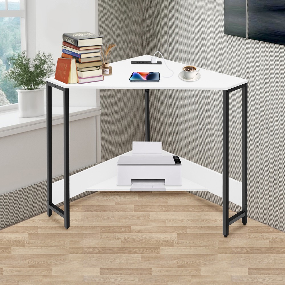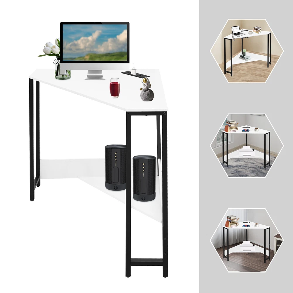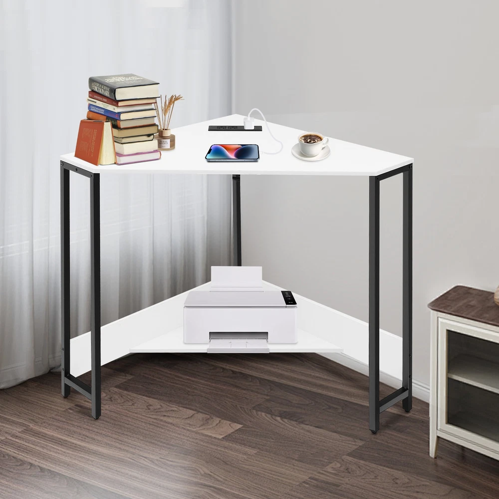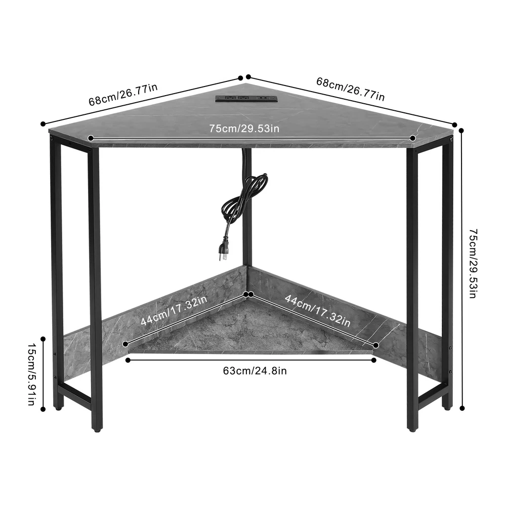 Small Computer Desk with Outlet Home Office Desk Free Standing Corner Desk Package Included 1* Corner Desk with Outlets All Accessories for Installation Key Features Last for Years: The product is made of high-quality density boards and iron, high hardness, not easy to deform and break. The veneered and plastic spraying processes make the product rust-proof and not easy to fade, which prolongs the service life. Thoughtful Design: The 2 USB interfaces and 2 US standard sockets are convenient for charging various devices, such as laptops, cell phones, tablets, and table lamps, adding more convenience for your use. The equipped 4.92ft power cord reduces the use distance limitation. Modern Appearance: The low-key color scheme and beautiful geometric shapes give this product a modern and fashionable appearance, which can complement your home decor no matter where it is placed in your home. Excellent Load Bearing: The thickened tubes and boards, and tight screw fixation make this product support about 66.14 lbs, which can meet your daily use needs to place your computer, books, and other items at will. Simple Assembly: The simple structure, pre-drilled holes, and complete accessories allow you to assemble this product in a short time and enjoy the installation fun. This corner desk is 90° designed to fit room corners, which is ideal for space-limited areas. Easy to Clean: With a simple structure and smooth surface, you can easily clean the product with a soft cloth. Details Lower Shelf: It provides more space to organize your mini printer, TV box, CDs, books, photo albums, documents, or magazines(all are not included). Smooth Edges: The smooth and round edges improve the safety of use without scratching your skin. Application It applies to offices, home office areas, student dormitories, design studios, game rooms, study rooms, etc.as a laptop table, computer desk, studying desk, and more. Specification Style: Modern Shape: Triangular Material: Density Board, Iron Process: Veneered, Plastic Spraying Mounting Type: Free Standing Assembly Required: Yes Voltage: 110V Plug Type: US Standard Power Cord Length: 1.5m/4.92ft Load-bearing Capacity: Approx. 30kg/66.14lbs Product Size: 68*68*75cm/ 26.77*26.77*29.53in Package Included 1* Corner Desk with Outlets All Accessories for Installation Notes Please check the product size carefully before ordering. Please make sure that you use the correct screws. Using the incorrect screws to assemble the product will cause the desk's board to split or break. If you want to shorten the installation time, you can use your own electric screwdriver to tighten up the screws. Children are not allowed to climb the corner computer desk for safety use. Please allow the slight color difference caused by the shooting light and 1-3cm error due to manual measurement, and make sure you do not mind before ordering. Payment Delivery details Terms of sales About us Contact us Payment We accept ebay payment 。 Fees such as import duties, taxes are not included in the item price or shipping costs. These charges are the buyer's responsibility. Delivery details Shipping: 2-9 working days to: USA Terms of sales We maintain high standards of excellence and strive for hundred percent customer satisfaction. Feedback is very important to us. We hope that you contact us immediately before you give neutral or negative feedback, so that we can address your concerns. It is impossible to address issues if we do not know about them! About us Your satis faction is our ultimate goal. We work hard to earn your trust and future business. Our certified technicians have tested each item before shipping. The unit comes with 1 year limited warranty on all manufacturing defects. a) If you receive a defective item, you may return it or ask for a discount. Please contact us within 14 days after you receive the package. b) What you returned must be intact and in its original packaging as re? u. Customer is responsible for shipping costs of the returned item. c) We will cover the cost of shipping back t with the shipping rate indicated in the registration page. We will send you a new unit or refund the full payment you paid. Thank you. Contact us Business Hour Business Hour: Monday To Friday: 8:30 AM to 5:00 PM (Beijing China time) Due to time zones, our reply to your questions may not be immediately. But within above working time, we will reply your email within 24 hours. If it's non-workdays, please kindly be patient and wait till Monday. Please contact us with ebay message. Please feel free to contact us if you have any questions. Monday To Friday: 8:30 AM to 5:00 PM (Beijing China time) Due to time zones, our reply to your questions may not be immediately. But within above working time, we will reply your email within 24 hours. If it's non-workdays, please kindly be patient and wait till Monday. Please contact us with ebay message. Please feel free to contact us if you have any questions. Brand Unbranded Item Height 75CM Item Length 75CM Item Width 68CM Type Triangular Material Density Board, Iron Style Modern Mounting Free Standing Department Adults