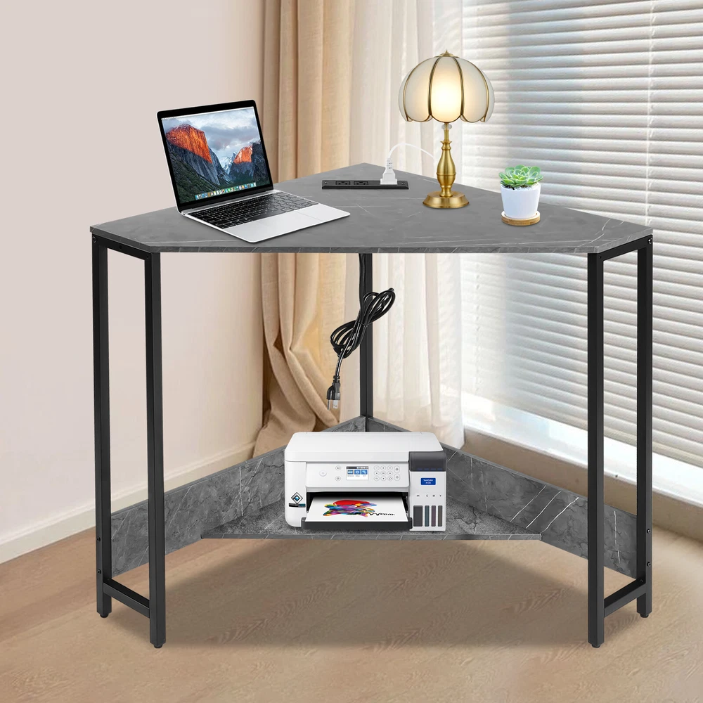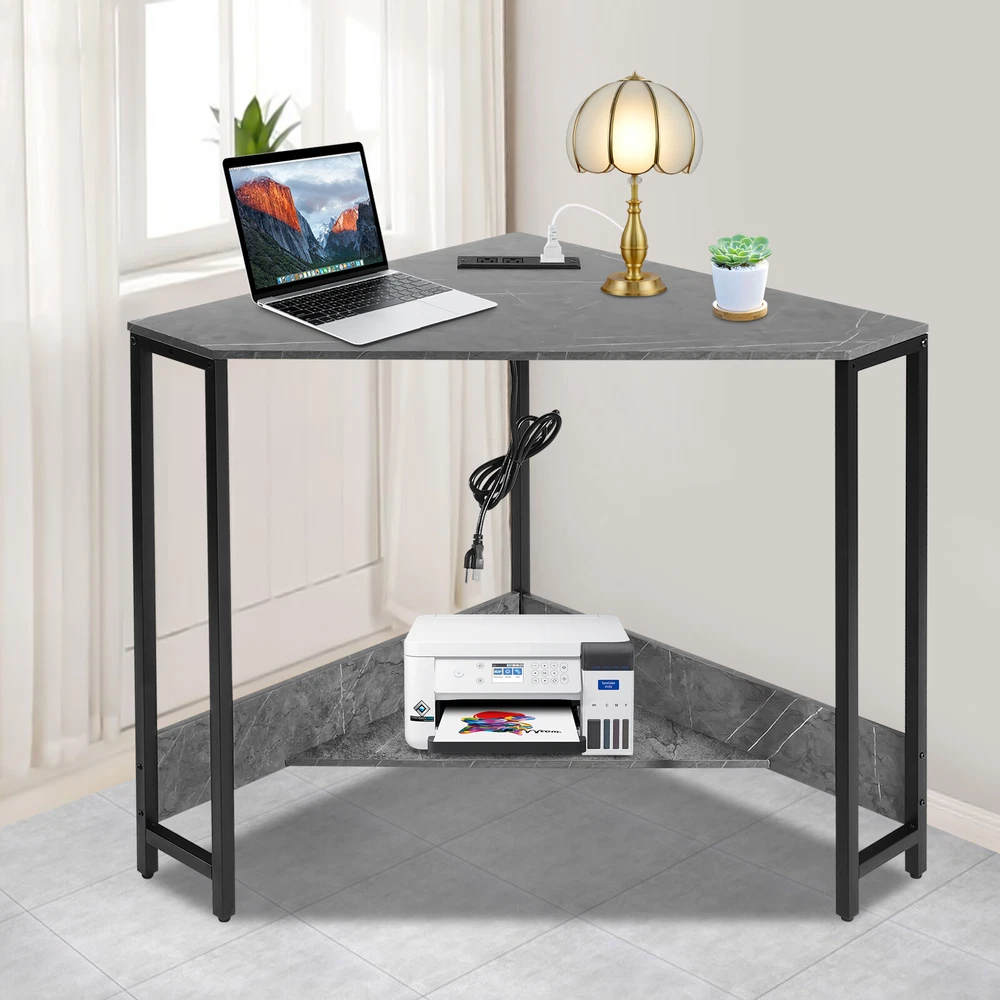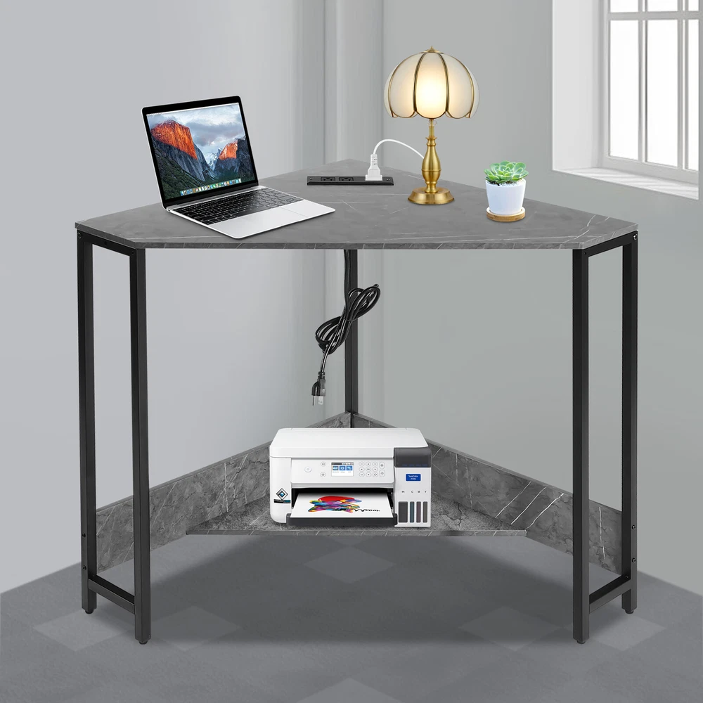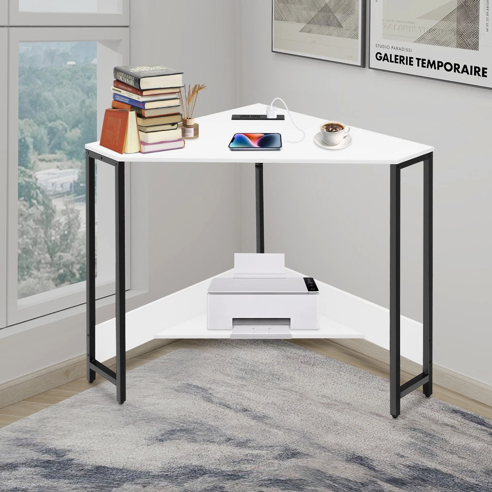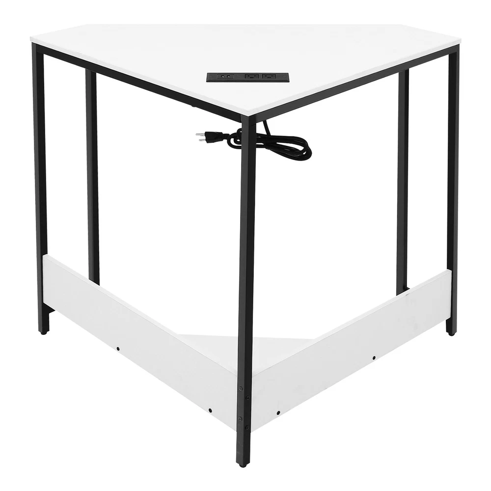Small Computer Desk with Outlet Home Office Desk Free Standing Corner Desk Package Included 1* Corner Desk with Outlets All Accessories for Installation Key Features Last for Years: The product is made of high-quality density boards and iron, high hardness, not easy to deform and break. The veneered and plastic spraying processes make the product rust-proof and not easy to fade, which prolongs the service life. Thoughtful Design: The 2 USB interfaces and 2 US standard sockets are convenient for charging various devices, such as laptops, cell phones, tablets, and table lamps, adding more convenience for your use. The equipped 4.92ft power cord reduces the use distance limitation. Modern Appearance: The low-key color scheme and beautiful geometric shapes give this product a modern and fashionable appearance, which can complement your home decor no matter where it is placed in your home. Excellent Load Bearing: The thickened tubes and boards, and tight screw fixation make this product support about 66.14 lbs, which can meet your daily use needs to place your computer, books, and other items at will. Simple Assembly: The simple structure, pre-drilled holes, and complete accessories allow you to assemble this product in a short time and enjoy the installation fun. This corner desk is 90° designed to fit room corners, which is ideal for space-limited areas. Easy to Clean: With a simple structure and smooth surface, you can easily clean the product with a soft cloth. Details Lower Shelf: It provides more space to organize your mini printer, TV box, CDs, books, photo albums, documents, or magazines(all are not included). Smooth Edges: The smooth and round edges improve the safety of use without scratching your skin. Application It applies to offices, home office areas, student dormitories, design studios, game rooms, study rooms, etc.as a laptop table, computer desk, studying desk, and more. Specification Style: Modern Shape: Triangular Material: Density Board, Iron Process: Veneered, Plastic Spraying Mounting Type: Free Standing Assembly Required: Yes Voltage: 110V Plug Type: US Standard Power Cord Length: 1.5m/4.92ft Load-bearing Capacity: Approx. 30kg/66.14lbs Product Size: 68*68*75cm/ 26.77*26.77*29.53in Package Included 1* Corner Desk with Outlets All Accessories for Installation Notes Please check the product size carefully before ordering. Please make sure that you use the correct screws. Using the incorrect screws to assemble the product will cause the desk's board to split or break. If you want to shorten the installation time, you can use your own electric screwdriver to tighten up the screws. Children are not allowed to climb the corner computer desk for safety use. Please allow the slight color difference caused by the shooting light and 1-3cm error due to manual measurement, and make sure you do not mind before ordering. Payment Delivery details Terms of sales About us Contact us Payment We accept ebay payment 。 Fees such as import duties, taxes are not included in the item price or shipping costs. These charges are the buyer's responsibility. Delivery details Shipping: 2-9 working days to: USA Terms of sales We maintain high standards of excellence and strive for hundred percent customer satisfaction. Feedback is very important to us. We hope that you contact us immediately before you give neutral or negative feedback, so that we can address your concerns. It is impossible to address issues if we do not know about them! About us Your satis faction is our ultimate goal. We work hard to earn your trust and future business. Our certified technicians have tested each item before shipping. The unit comes with 1 year limited warranty on all manufacturing defects. a) If you receive a defective item, you may return it or ask for a discount. Please contact us within 14 days after you receive the package. b) What you returned must be intact and in its original packaging as re? u. Customer is responsible for shipping costs of the returned item. c) We will cover the cost of shipping back t with the shipping rate indicated in the registration page. We will send you a new unit or refund the full payment you paid. Thank you. Contact us Business Hour Business Hour: Monday To Friday: 8:30 AM to 5:00 PM (Beijing China time) Due to time zones, our reply to your questions may not be immediately. But within above working time, we will reply your email within 24 hours. If it's non-workdays, please kindly be patient and wait till Monday. Please contact us with ebay message. Please feel free to contact us if you have any questions. Monday To Friday: 8:30 AM to 5:00 PM (Beijing China time) Due to time zones, our reply to your questions may not be immediately. But within above working time, we will reply your email within 24 hours. If it's non-workdays, please kindly be patient and wait till Monday. Please contact us with ebay message. Please feel free to contact us if you have any questions. Brand Unbranded Item Height 75CM Item Length 75CM Item Width 68CM Type Triangular Material Density Board, Iron Style Modern Mounting Free Standing Department Adults
