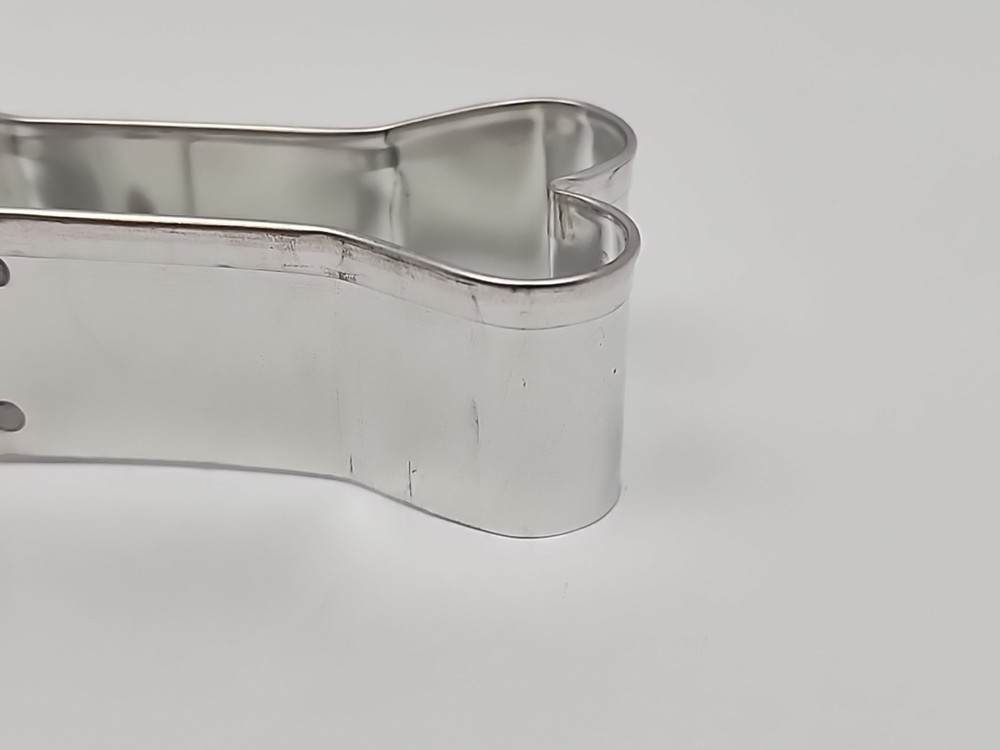 The Dog Bone Shaped Stainless Steel Cookie Cutter Small is a versatile baking accessory perfect for all occasions. Made of durable stainless steel, this cookie cutter features a solid silver color and a fun dog bone shape. Easy to clean and featuring a cute dog bone theme, this cutter is a must-have for any baking enthusiast looking to add a touch of whimsy to their creations. Perfect for those who love animals and looking to make unique and tasty treats for their furry friends or guests.