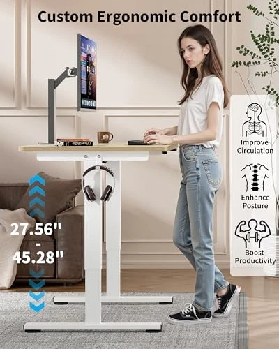 Return Policy Fast Delivery Trusted seller Small Electric Standing Desk, 36" x 24" Whole Piece Height Adjustable Desk, Oak Sit to Stand Computer Workstation with Wheels for Home Office Product Description 【Stable & Sturdy Design】This electric standing desk boasts a powerful motor and has been rigorously tested 20,000 times. This office desk can securely hold up to 154 lbs of weight. With safety as our priority, this rating reflects a conservative estimate - our real-world testing proves a 176 lbs load capacity, providing a solid base for your monitors, laptops, and other devices. This stand up desk ensures a wobble-free experience, even at the highest settings 【Ergonomic Height Adjustment】This adjustable electric desk for sitting and standing with a single button press, allows you to find the perfect ergonomic position to improve posture and enhance productivity. This sit stand desk adjusts smoothly from 27.56" to 45.28" in height with low noise <50 dB, it won't disrupt your workflow or influence families and pet rest. (Wheels Diameter: 1.97") 【One-Piece Desktop】The adjustable standing desk features a 36" x 24" one-piece desktop, ensuring you have ample space for your monitor, laptop, and more, creating a clutter-free, efficient workspace. That 36 inch desk available in white, black, and oak color, features one headphone hook. The back of the tabletop is specially designed with grooves for easy cable arrangement 【Compact & Movable Design】 Designed to fit seamlessly in smaller spaces, this small standing desk takes up only 6 ft² of floor space. With adjustable foot pads for extra stability or lockable casters for smooth mobility, you can move this escritorio easily while maintaining a secure, steady position. Install this drafting table is simple with pre-drilled holes and packed accessories 【Ideal for Offices】Combat the negative effects of prolonged sitting with this sit to stand desk, which allows you to alternate between sitting and standing. This promotes better posture, reduces fatigue, and fosters healthier work habits. In addition, put this small desk in a bedroom as home office desks, or use it as gaming computer desk and dorm sports desk Shipping Returns Payment Shipping Shipping is FREE to all addresses other than APO/PO boxes in the lower 48 states. All our stock ships from US-based warehouses. Shipped via USPS or UPS (depending on location and package weight) Unless stated otherwise, all orders will ship within 24-72 hours of your payment being processed. Check our feedback to see the great reviews of FAST shipping we offer. Returns Seller does not accept returns Payment We currently accept payment via eBay managed payments only. Once payment is cleared, we will dispatch your shipment within 1-3 business days. Please refer to the "Shipping" tab for more information regarding shipping speed to your destination.