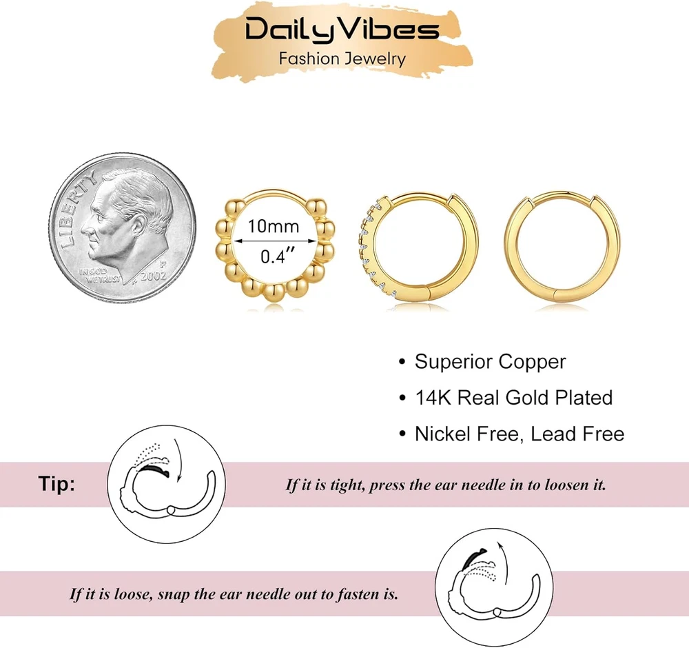 Store New Arrivals Add to Favorite View Feedback Contact Fast deliveries to the customer's home Quality customer service John Make the customers happy! Small Gold Hoops Huggie Earrings for Women 14K Real Gold Plated Dainty Cubic Zirconia Mini Bead Cartilage Earring Hypoallergenic Hoop Earrings Set for Women Description Metal stamp 14K Gem Type Cubic Zirconia Color Gold Earrings Set 10mm Material Metal Metal Copper Model number YE17-K1 Setting Pave Department womens Back finding Hinged Hoop Package Dimensions 3.11 x 3.11 x 0.71 inches ABOUT US We offer the best prices around on high quality products. Our E-store includes media such as books, movies, music and games while offering electronics, toys, sporting apparel, clothing, tools, general home, garden items and more. SHIPPING We are always working hard to ensure your package arrives as soon as possible. Please understand that some factors like weather, high postal traffic, and the performance of shipping companies are outside of our control. We offer free shipping to the lower 48 states and ship within 2 business days of payment, usually sooner. We do not accept P.O. Boxes. Please provide a physical address. For shipping outside of the continental USA, we only use eBay's Global Shipping Program. The item is shipped to KY and then sent to the rest of the world. International customers are responsible for all duties and taxes. Continue to 'check out' to calculate costs for shipping the item to your country. Messages regarding eBay's Global Shipping Program MUST be directed at eBay EXCLUSIVELY. RETURNS We offer a 30-Day Return Policy on items in which you are not completely satisfied with. You have the option of a full-refund or an exchange of the item. No returns are available on items shipped outside of the USA PAYMENT We accept PayPal. CONTACT US This page content is yet to come Please ad us to your favorite seller and visit again later Thank You CUSTOMER SATISFACTION We try our very best to make sure every customer is completely satisfied. If there's a problem, message us! We're happy to help. WE ACCEPT