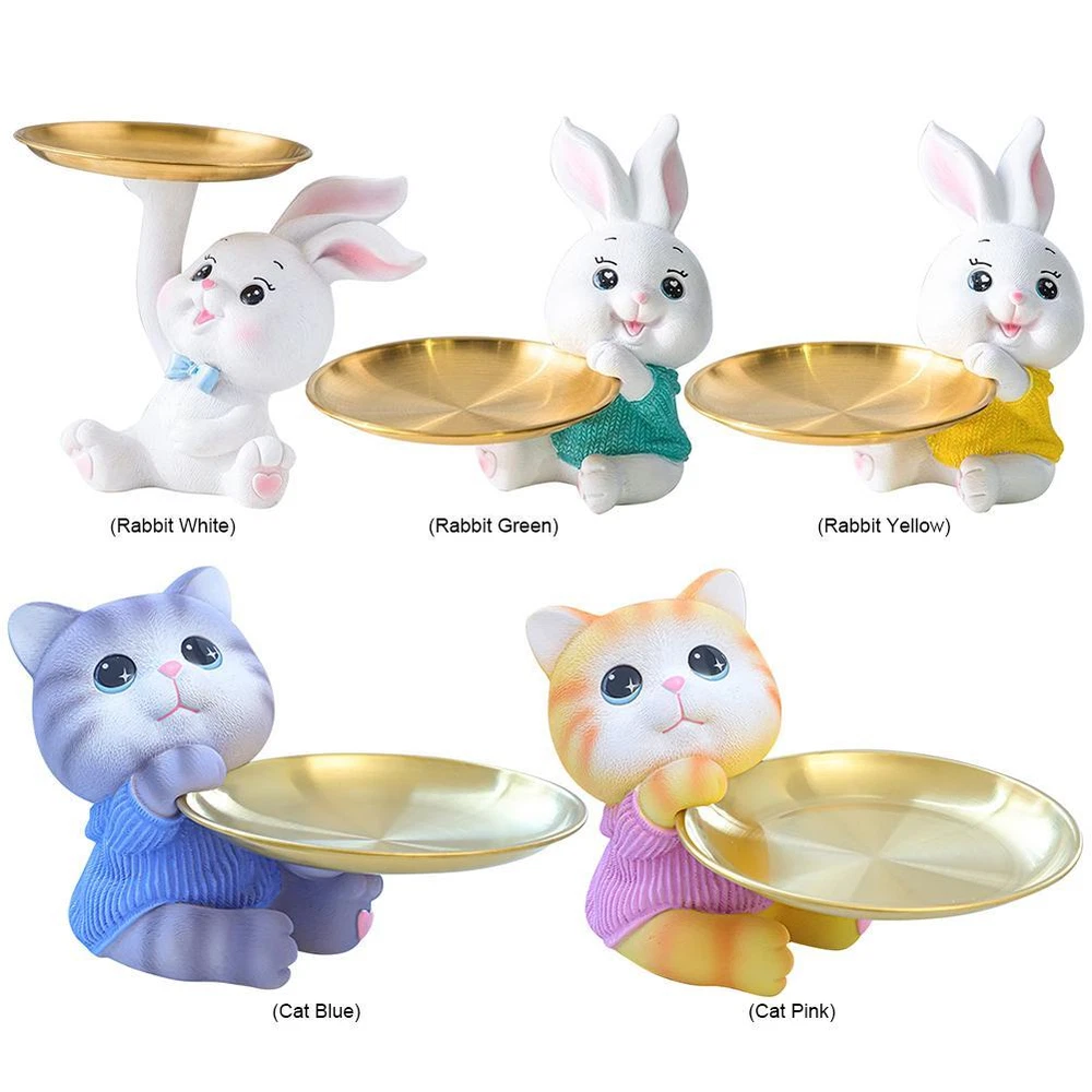 Free and fast shipping , shipping take up 1-7 Business Days 30 Day Return Accepted EASY PAYMENT via PayPal, Credit Card, PayPal Credit, Google Pay... Figurine Animal with Tray Resin White Small Modern Carved Free Stand Decor Item Description > > > Cute Rabbit/Cat Storage Tray Multifunctional Creative Figurines Ornaments Resin Rabbit Sculpture Key Tray Living Room Porch Desk Home Decoration Feature: 1. Excellent Material: Crafted from premium, environmentally friendly resin, our creative figurines ornaments stand out for their robustness, longevity, and resistance to daily wear. Their vibrant, gleaming colors enhance any room, while the smooth, refined texture ensures a touch of elegance. 1. Completely safe and non-toxic, they provide peace of mind with their odorless composition. 2. Clever Design: Featuring delightful rabbit and lazy cat motifs, our figurine tray infuses any space with energy and animation. The realistic and endearing depictions create a sense of warmth and harmony, introducing a distinct natural allure to your decor. 3. High Practicality: Beyond its artistic allure, this tray is immensely functional. Designed to neatly organize keys, jewelry, cosmetics, and other small essentials, it adds a layer of fun and practicality to your routine, making daily organization a delightful affair. 4. Artistic Aesthetics: Each piece is a testament to exceptional craftsmanship, with attention to detail that ensures smooth lines and impeccable finishes. Ideal for collecting or gifting, it reflects sophistication and a refined artistic sensibility, distinguishing the owner's taste for elegance and creative expression. 5. Versatile Application: Our statue candy dish enhances the aesthetic appeal and cozy ambiance of any room, whether it's the living room, bedroom, or study. Its compatibility with various decor styles, from modern minimalism to rustic and Scandinavian, makes it a versatile addition to your home, enriching the artistic atmosphere. Specification: Product material: resin + metal Product features: easy to clean, anti-corrosion and anti-rust, round and anti-scratch Scope of application: living room, study room Product size: Bow Tie Rabbit: 150*150*50.00mm/5.91x5.91x1.97Inch Sweater bunny: 200*180*140mm/7.87x7.09x5.51inch Sweater cat: 175*170*150mm/6.89x6.69x5.91inch Note: Due to the different monitor and light effect, the actual color of the item might be slightly different from the color showed on the pictures. Thank you! Please allow 1-2cm measuring deviation due to manual measurement. Package includes > > > 1 x Tray Ornaments Picture Show > > > REVIEWS The product came very well packaged. I'm very happy. thank you for everything. Seller strongly recommended. This is great! I definitely recommend! Product looks amazing Delivery was fast. Excellent seller, great communication. I advise everyone to buy it!