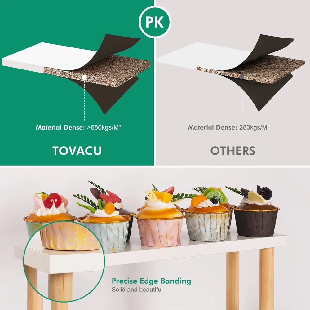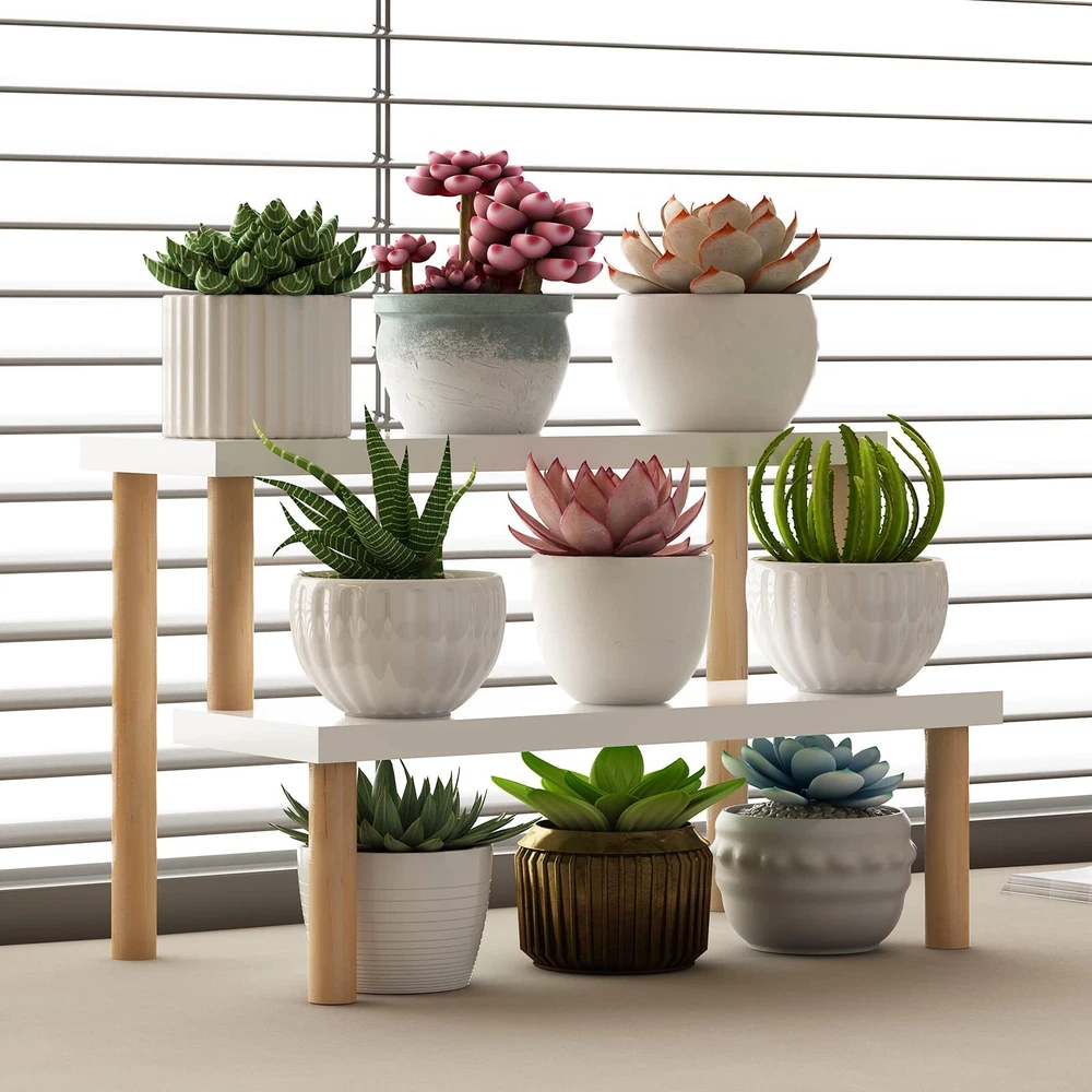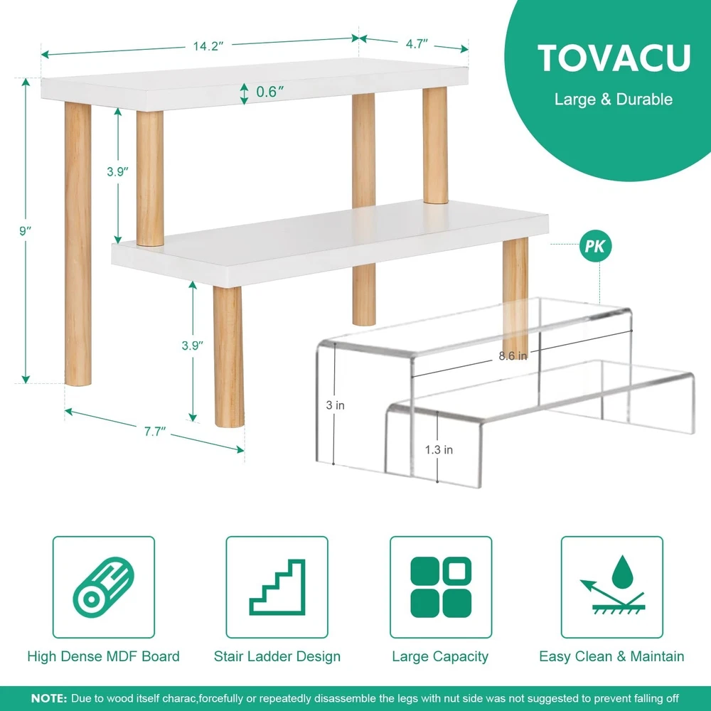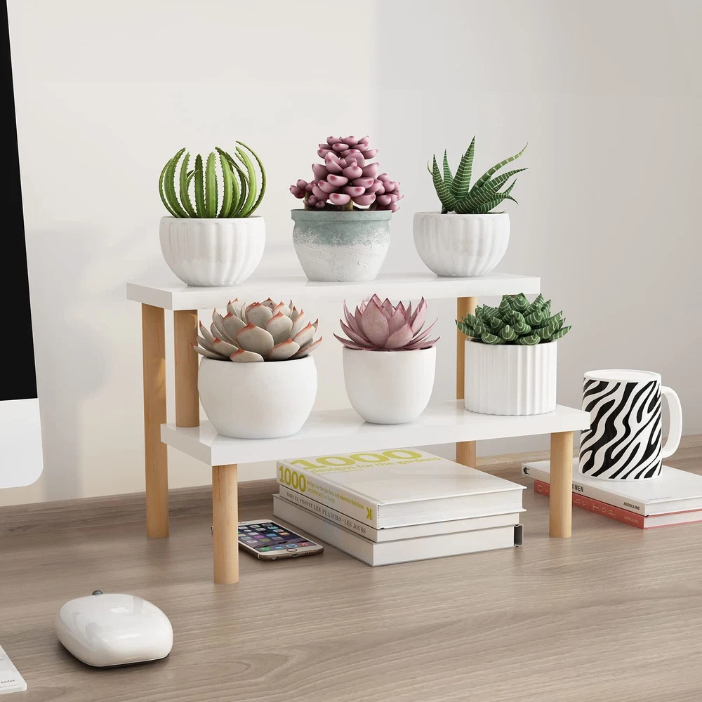 Small Plant Stand Indoor Ladder Shelf Desk, 2 Tiers Desktop Flower Stand Window Sill ,Wood Display Stand for Succulent Cupcake Spice Rack Countertop ( White, 14.2") Product Details Size: 2 Tiers Brand: Tovacu MPN: 2 Tiers Desk Ladder Shelf White UPC: Does not apply EAN: Does not apply Color: Brown Material: Pine Wood Brand: Tovacu Item Weight: 2.67 Pounds Item dimensions L x W x H: 14.2 x 7.7 x 9 inches Finish Type: Polished Shape: Square Base Type: Leg Assembly Required: Yes Load Capacity: 20 Pounds Number of Levels: 2 Special Feature: Durable,Waterproof Manufacturer: Tovacu Product Dimensions: 14.2 x 7.7 x 9 inches Item Weight: 2.67 pounds Country of Origin: China Item model number: 2 Tiers Desk Ladder Shelf White E1 GRADE HIGH DENSE BOARDCompared with ordinary board, Tovacu desktop plant stand indoor adopts 15mm E1 Grade Thicken MDF board,with high density of 680kgs/M3,which is hard,durable,wear-resistant,waterproof and easy clean.Round legs are made of 20mm thick solid natural wood without painting,is safe and beautiful with clear texture.Classic white color combined with natural wood makes the plant shelf indoor suitable for any furniture and countertop. THREE TIMES SPACE EXTENSIONLadder design plant holders indoor stand,each layers not block each other, makes plants display more stereoscopically,benefits for plants grow without height limit. Two pcs of 3.9 legs divided the avaible space into three layers,which could accommodate at least 12 potted of plants. The depth is upgraded from 3.9 to 4.7,fits for various size flower pots placement. Large Capacity2 Tiered window plant shelf indoor size H9 x W14.2 x D7.7 inches,3.3 lbs. 14.2 length could accommodate at least four items each row. The desk will no longer chaotic and your life will be more efficiency with this desktop corner plant stand. Light weight ,can be move at will.Assemble required but easy.(Due to wood itself charac,forcefully or repeatedly disassemble the legs with nut side was not suggested to prevent falling off) MULTI-FUNCTIONAL WINDOW PLANT SHELVESTovacu tabletop ladder plant stand not only can be used as a wooden plant stand,but also a multiple usage desktop organize shelf rack for kitchen,home,office,bakery,bedroom,windowsill to organize spice,cupcakes,decorations,toys,dolls,clocks,ornaments and comestics.In addition,it was a best gift choice for friends,parents,children on Thanksgiving Day,Birthday,Wedding,New Year,Halloween Day . FOCUS ON DETAILSHidden screw design makes the 2 tiers cupcake stand holder surface more beautiful without leaking screw holes. Pre-installed nuts makes the display stand for vendor events installation more easier and convenient. 20 Years professional exquisite edge banding technology makes the edge more smooth and comfortable. High quality of carbon steel screws is more durable to use.