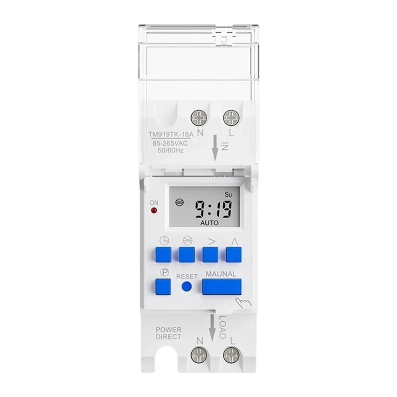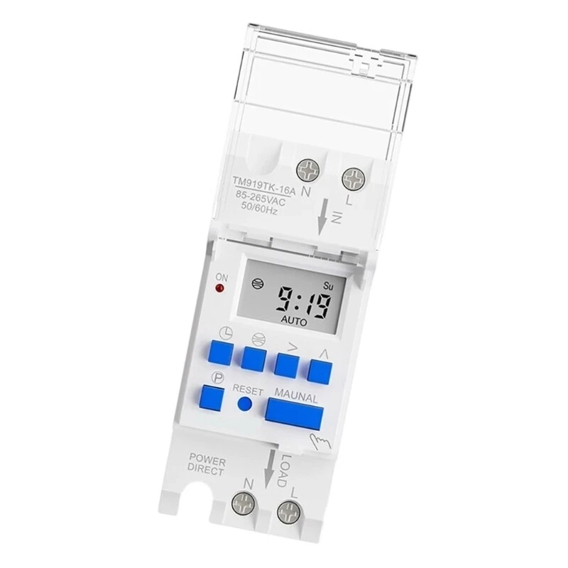 Features: This Digital Timer Switches offers precise control over electrical devices, supporting large power equipment up to 16A, making it energy efficient solution for various applications. Featuring a stylish blue designs , this programmable electronic time control Switches is equipped with a clear LCD display and supports up to sixteen setting per day or week. Suitable for home users, professional electricians, office managers, and energy saving enthusiasts search efficient power management solution Perfect for a wide ranges of timing control situations, including home lighting, office equipment, and garden irrigation systems, ensuring best functionality and convenience. With its Multifunction mounting option , this digital timer Switches ensures reliable Performances and long Service memory retention, even during power outages. Specifications: Material: ABS Type: 16A/30amp Voltages: 85-265VAC Size: about 87x35x65mm/3x1x2.6inch Package Includes: 1xDigital Timer Switches note: Please allow to 3cm error due to manual measurement, please make sure you do not mind before you bid, Due to the differences between different monitors, the picture may not reflect the actual colorful of the item.