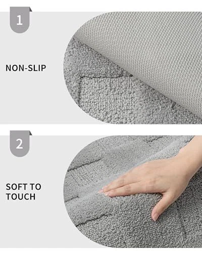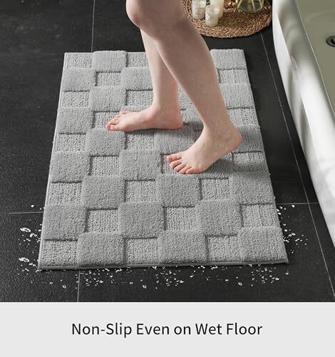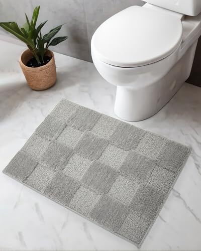 Bought this for my small bathroom, and it fits perfectly! The grey waffle design looks sleek and modern. Super soft underfoot while still being thin enough to fit under the door. Washed it once already—no shedding, and the non-slip backing works great. Dries fast, too! Definitely worth it for the price.
