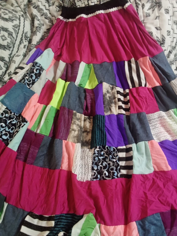 Brightly colored patchwork hippie / boho skirt. Women's size small. Handmade for Schwagstock, a local festival. Happy bidding.