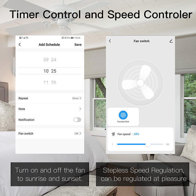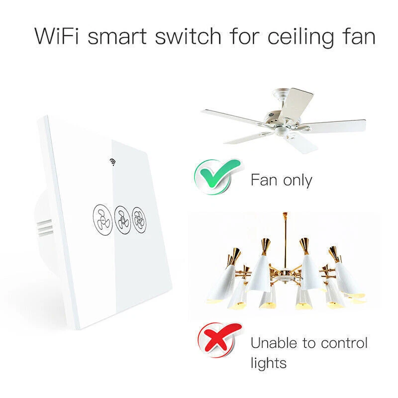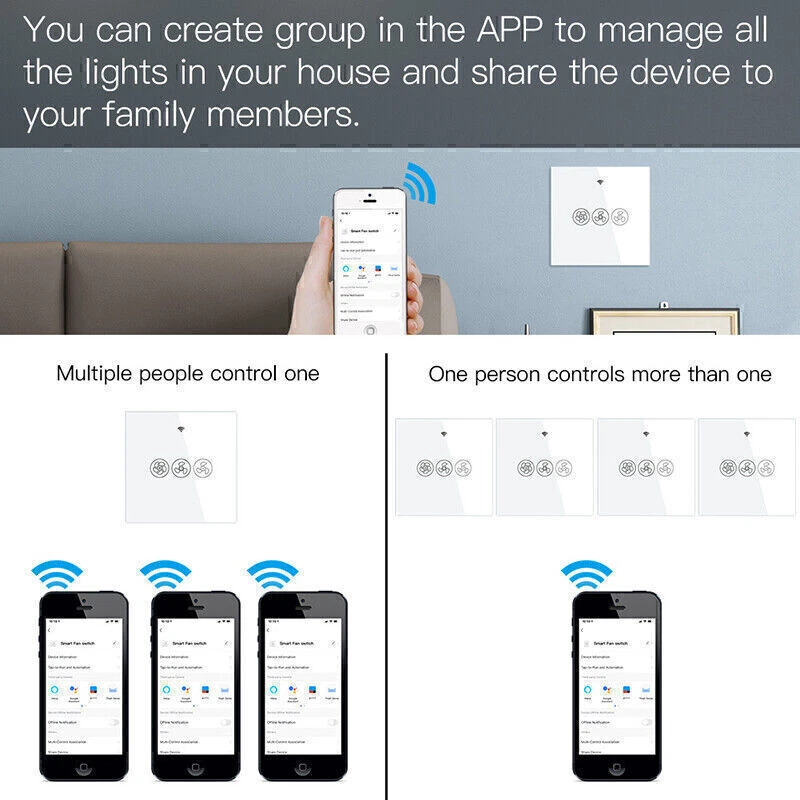 Product Description If you have any questions, please contact customer service first, do not open disputes easily, thank you! Description: Update 1: Multi-control in a much easier way. Update 2: New pairing mode with WiFi+Bluetooth. Update 3: Backlight ON/OFF optional. Update 4: Relay status adjustable when power off. Update 5: RF frequency built-in for RF remote control. Features: 1. 2/3-way multi-control association to control 1 ceiling fan with multiple switches; anti-scratch tempered glass panel suits any home decor and allows for effortless touch control; you can multi-control associate this switch to multiple different switches in Smart Life App. 2. Non-interference control mode; allows the switch to be controlled via Smart Life, touch control, voice control, and remote with RF433 frequency and 1527 encoding remote switch(not included); each control method works independently; achieve multi-control by associating to other smart switches 3. Compatible with for Alexa and Google Home for hands-free voice control; can also be controlled via Smart Life/Tuya app anytime, anywhere; setting relay status and remembers last relay status optional when powered off , backlight switch On/Off. 4. Take full control of connected appliances with timers, schedules and countdown (1/5/30 mins, 1 hour, etc.) with the app; share control with family and friends for added convenience. 5. Neutral wire is required in your switch boxes to operate correctly; only supports 2.4 GHz network; offers easier pairing via WiFi and Bluetooth connectivity. Specification: Shell material: flame retardant PC Color: White/Black Rated voltage: 100-250V Startup method: manual/app/smart speaker/remote control Panel material: tempered glass Remote control battery: LR 23A/12V (not included) Package list: 1* Selected item About Us We accept all payments authorized by eBay. powered by