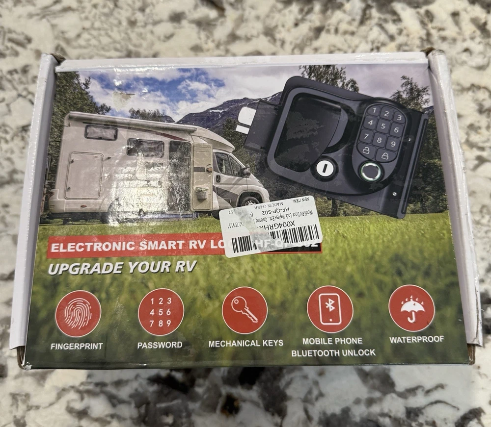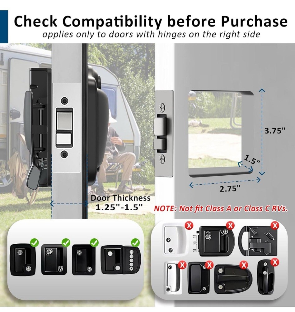 RV Door Lock Keyless Entry, 4-in-1 RV Keyless Entry with Bluetooth, Fingerprint, Keypad, Camper Door Lock, RV Door Latch for Camper, Lock Hole 3.75"x2.75"x1.5", Not fit Class A or Class C RVs
