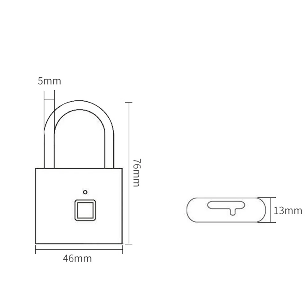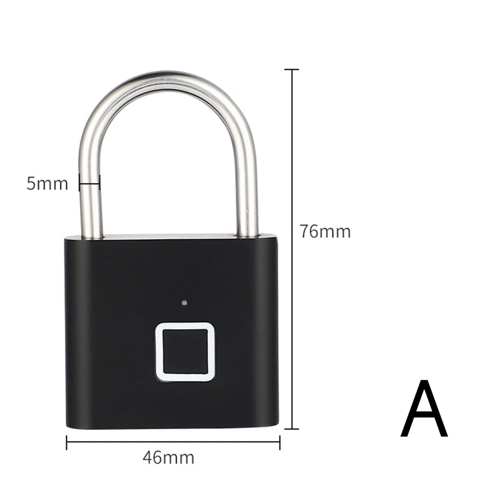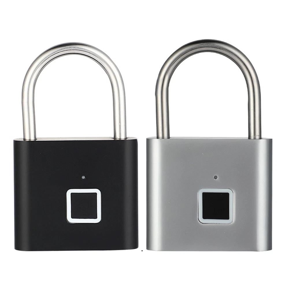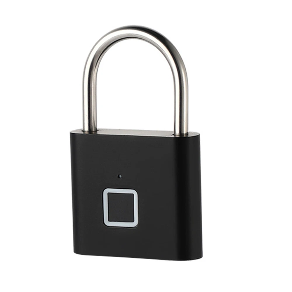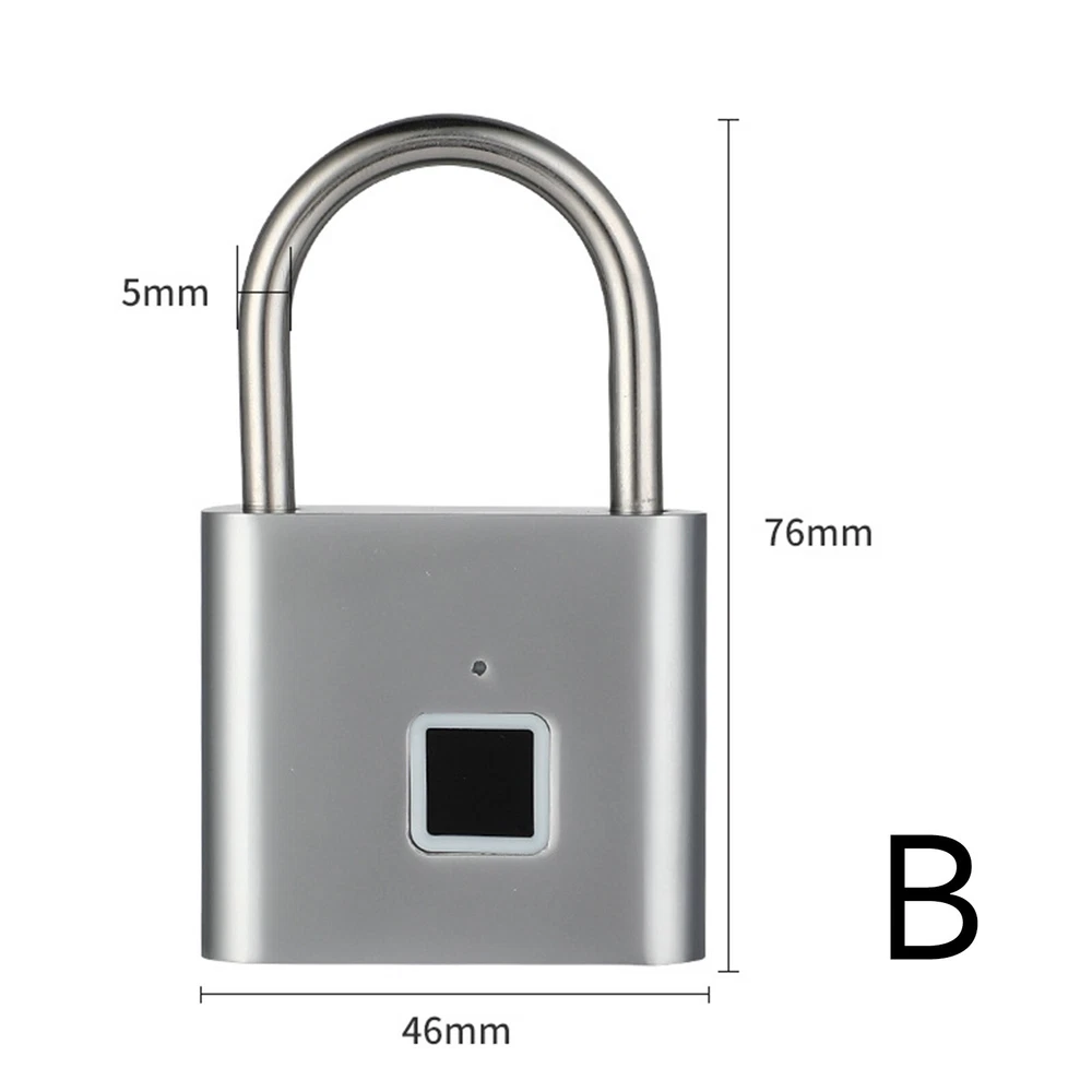Smart Fingerprint Door Lock Keyless Anti-theft Security Padlock USB Rechargeable Features: *Safe and reliable ,unlock at one touch,your finger,is password now. *Unlock: It is easy to operate, stores up to 10 fingerprints, and is managed directly in the smart lock. *Unlocking Methods: This fingerprint padlock has 360 degree fingerprint acquisition function and only unlock for 1 second and quickly identify biometric locks to quickly identify your fingerprints. With LED Indicator: with red & blue indicator to represent different status. Fast Response: built-in advanced CPU, great identification, it only takes 1 second to unlock. *Superior Strength & Durability: made of zinc alloy body and stainless steel latch hook. *Low Battery Prompt: when battery capacity is low, the indicator will flash Red fast to remind you. *USB Rechargeable: Built in rechargeable lithium battery, Can be easily charged by USB cable (micro USB port is on bottom),Low power consumption and long standby time,If the battery is short of power, it can be unlocked in an emergency. The longest standby time is up to half a year; Specifications: Colour: Silver/Black; Model: O10; Material: Zinc alloy; Case material: kirsite; Lock Size: 46*40*16mm; Lock beam diameter: 5mm; Fingerprint shape: Square; Fingerprint capacity: Record 10 times and save 10 groups; LED light: Three color light: red / blue / green; Battery: 3.7V lithium battery; Working voltage: 3.0-4.2V; Charging + Emergency: USB interface: MICRO; Low battery alarm: 3.5V; full charging time:1-2hours; full charged unlock times:9000times; Standy Time:12 Months; Package Included: 1 x Fingerprint Padlock; 1 x USB-Micro Charging Cable; 1 x User Manual; 1 x Box;