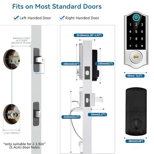 Return Policy Fast Delivery Trusted seller Fingerprint Smart Door Lock for Front Door with Handle Set, App Control, Keyless Entry Door Lock Keypad Deadbolt, Digital Electronic Touchscreen Front Door Lock Set, Auto Lock, Satin Nickel Product Description [All in 1 Fingerprint Door Lock] Fingerprints/ App/Passcode/IC Cards/Physical Keys/E-key. Smart deadbolt locks are always ready to protect your home, allowing you to set auto lock between 5~900 seconds or apply 1-touch motorized locking, press # on keypad for 2s to activate one-touch lock. [Biometric Fingerprint Access] Unlock your door instantly with a quick fingerprint scan, offering secure and convenient entry without the need for keys or codes. Never worry about lost, stolen, or copied keys again. [APP Management] You can generate and share one-time, permanent, scheduled, and recurring code to your visitors, manage access rights and view access logs. Keyless lock features 50 fingerprints, 250 passcodes, 1000 ic cards (3 include). [Remotely Control & Voice Control] Pair the keypad lock with Gateway(sold Separately.) You can remotely control via App, you can unlock or lock your door anytime, anyw, while also working with Alexa/Google Assitant to enable voice control,receive real-time push notifications, monitor smart door lock status, etc. [Enhanced Security] The smart deadbolt features auto-lock, one-touch locking, Anti Peeping password keypad, privacy mode, passage mode, silent mode, Anti-wrong password, emergency power port to plug in for a temporary power supply. [Warm Tips] Door thickness range: 1.38 inch to 1.97 inch 35mm-50mm thick, work with standard wooden, left and right handed doors, great solution for Airbnb rental. Please use 4pcs 1.5V AA dry batteries (No include). Rechargeable batteries are not recommended, because most rechargeable battery's voltage is 1.2V. Shipping Returns Payment Shipping Shipping is FREE to all addresses other than APO/PO boxes in the lower 48 states. All our stock ships from US-based warehouses. Shipped via USPS or UPS (depending on location and package weight) Unless stated otherwise, all orders will ship within 24-72 hours of your payment being processed. Check our feedback to see the great reviews of FAST shipping we offer. Returns Seller does not accept returns Payment We currently accept payment via eBay managed payments only. Once payment is cleared, we will dispatch your shipment within 1-3 business days. Please refer to the "Shipping" tab for more information regarding shipping speed to your destination.