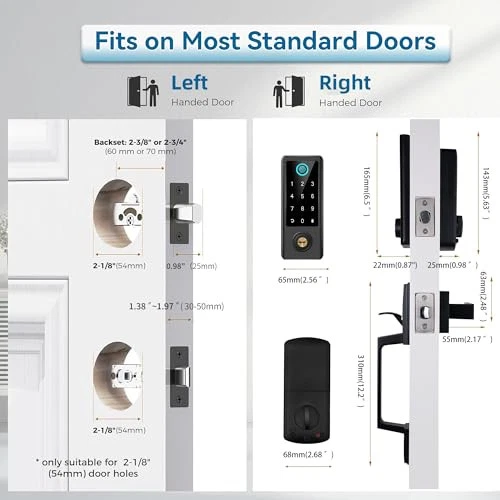 Return Policy Fast Delivery Trusted seller Fingerprint Door Lock with Handle Sets, Keyless Entry Door Lock Deadbolt, Bluetooth Front Door Lock Set, Smart Door Lock, Electronic Keypad Door Lock with Handle, Digital Smart Deadbolt, Black Product Description [Multi Functional Keyless Entry Door Lock] This smart door lock offers the convenience and security for your home, you don't need to fumble for keys. Access your smart deadbolt lock via Fingerprint, Passcode, Bluetooth App, Physical Keys, IC cards, Alexa /Google Voice and Remote Access (need gateway sold separately) . Allowing you to control your door lock easily and securely. [Remote Access & Voice Control] Pair the Keyless lock with an additional gateway(sold separately) , will enable you to remotely lock and unlock your door, you can also Voice control Alexa to to lock/unlock lock, enjoy the convenience of check real-time lock status, remotely share or modify passcodes for guests. [Multiple Users Fingerprint Lock] 50 Fingerprints + 250 Passcodes + 1000 IC Cards (3 include). Fingerprint door locks can generate and share one-time, permanent, timed, recurring code, custom code and erase code with diifferent visitors and your friends. Note: The system locks up for 2 minutes after 5 wrong entry passcodes/fingerprint/fobs. [Security Front Door Lock Set] Keypad deadbolt features privacy mode, silent mode, passage mode, auto lock, one-touch locking, anti-peeping password and wrong passcode limit let you no longer to worry about the safety of your home. Smart deadbolt lock withstands temperatures from -4 °F to 140 °F. [Wide Compatibility] electronic deadbolt fits on most US standard left-handed and right-handed doors. Ensuring compatibility with US Standard doors ranging in thickness from 1.38 inch to 1.97 inch 35mm-50mm thick. Ideal for home, apartment, hotel, office and Airbnb. Shipping Returns Payment Shipping Shipping is FREE to all addresses other than APO/PO boxes in the lower 48 states. All our stock ships from US-based warehouses. Shipped via USPS or UPS (depending on location and package weight) Unless stated otherwise, all orders will ship within 24-72 hours of your payment being processed. Check our feedback to see the great reviews of FAST shipping we offer. Returns Seller does not accept returns Payment We currently accept payment via eBay managed payments only. Once payment is cleared, we will dispatch your shipment within 1-3 business days. Please refer to the "Shipping" tab for more information regarding shipping speed to your destination.