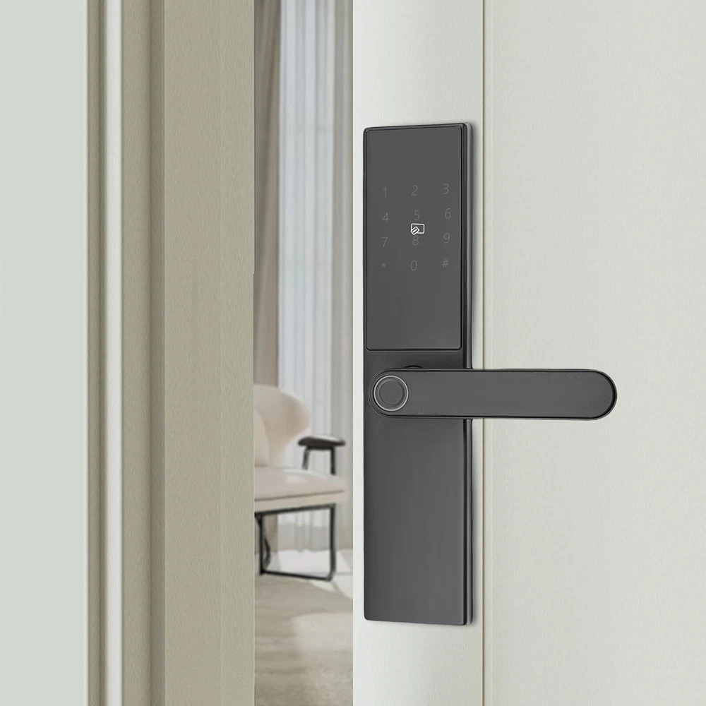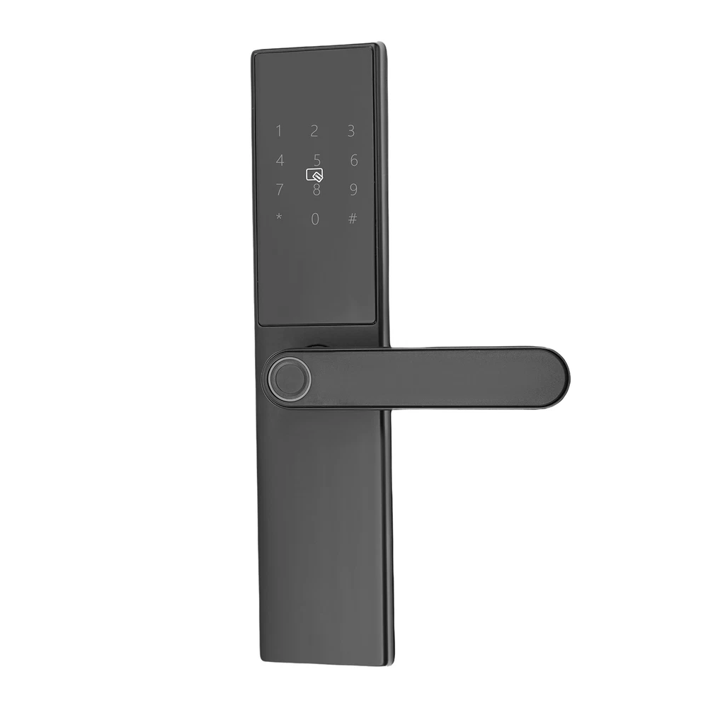 Fingerprint Password Entry Home Lock Smart Door Lock Digital Keypad Door Lock Description Are you still struggling with the security of your door locks, please look at our smart door lock. Our product has multiple unlocking methods, adopts high-end technology, and has multiple protective functions. It is a sensitive, safe, and convenient smart door lock that protects your safety. Key Features Made to Last: This product is made of high-quality aluminum alloy by spraying process, sturdy and durable, and can be used for a long time without frequent replacement. High Safety: If the fingerprint or password is incorrectly entered 5 times in a row, the door lock is pried or the battery is below 20%, it will sound an alarm, providing all-around protection for your safety. The shielded electromagnetic interference technology prevents the opening of the little black box. The virtual position anti-peep password technology also protects your privacy. Multiple Unlocking Options: The locking options for this product are fingerprint, password, key, IC proximity card, temporary password, and remote unlocking, which provide you with convenient unlocking, and you don't need to worry about not being able to unlock the door due to dropping the key anymore. Sensitive Touch and Control: Semiconductor fingerprint head design and IC unlocking technology ensure easy unlocking without the need to memorize the code. Thoughtful Design: You can use Bluetooth to connect to your phone APP to manage the door lock, send temporary codes remotely, and provide temporary access for friends, family, and visitors. With type-c emergency charging design, you don't need to worry about not being able to open the lock because it's out of battery. Ideal Gift: With good performance and a modern appearance, it can be used as an ideal housewarming gift for parents, friends, and lovers so that they can also enjoy a more convenient and safe life. Protective Package: To prevent the product from being damaged during transportation, we packed it with sponges to protect your products to the maximum extent possible. Good Customer Service: We aim to provide quality products and services. If you have problems, please feel free to contact us. We will reply and solve the problem for you as soon as possible. Details Flexible Handle: This design allows you to adjust the door handle to the actual door you are installing without having to worry about the door not matching the lock. Adjustable Base Plate: With a reasonable hole design, it does not need to punch the holes again for both new and old doors, and ensures easy installation. Application This product is suitable for doors in homes, hotels, apartments, guesthouses, etc. Specification Color: Black Style: Modern Material: Aluminum Alloy Process: Spraying Assembly Required: Yes Mounting Type: Door Mount Operating Current: <300MA Batteries: 4* AA Batteries(Not Included) Applicable Door Thickness: 35-55mm/1.38~2.2in Operating Temperature: -10~60°C/14~140° Number of Fingerprints: 50 Groups Number of Passwords and Cards: 100 Groups Total Product Size: 30*6.8*7.2cm/11.81*2.68*2.83in Package Size: 36.2*11*8.5cm/14.25*4.33*3.35in Gross Weight: 1.7kg/3.75 lbs Net Weight: 1.54kg/3.4 lbs Package Included 1*Smart Door Lock 1*English Manual 2*Keys 2*Proximity Cards Other Accessories for Assembly Notes Please make sure that the size fits your door before ordering. It is recommended to install it by a professional. Please read the operating manual completely before use. And pay particular attention to the safety instructions included. Please allow the slight color difference caused by the shooting light and 1-3cm error due to manual measurement, and make sure you do not mind before ordering. Process Spraying Assembly Required Yes Mounting Type Door Mount Batteries 4* AA Batteries(Not Included) Applicable Door Thickness 35-55mm/1.38~2.2in Operating Temperature -10~60°C/14~140° Number of Fingerprints 50 Groups Number of Passwords and Cards 100 Groups Total Product Size 30*6.8*7.2cm/11.81*2.68*2.83in Package Size 36.2*11*8.5cm/14.25*4.33*3.35in Gross Weight 1.7kg/3.75 lbs Net Weight 1.54kg/3.4 lbs Brand Unbranded Material Aluminum Alloy Color Black Style Modern