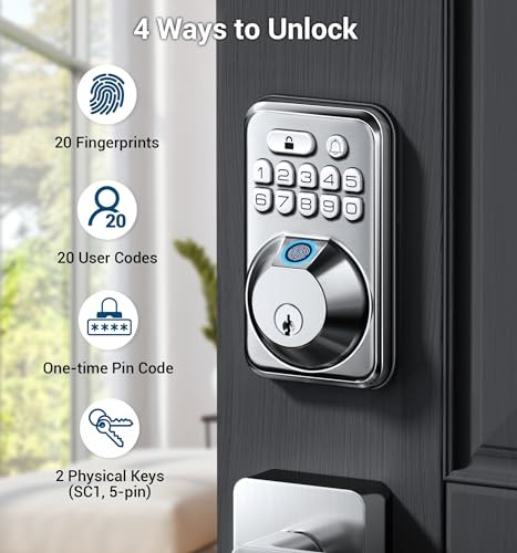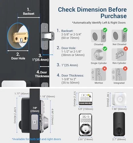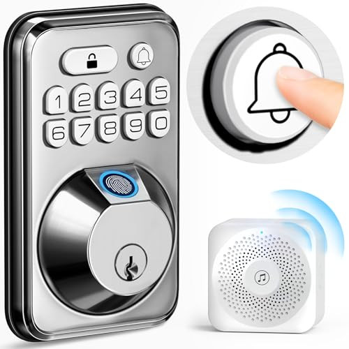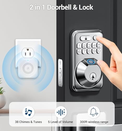 Return Policy Fast Delivery Trusted seller Fingerprint Keypad Deadbolt Lock with Wireless Doorbell - Digital Keyless Entry Door Lock with Electronic keypad - Secure Code Access, 38 Chimes Product Description 【2 in 1 Smart Fingerprint Lock & Doorbell plus one Chime】Get all at once! No extra doorbell needed. This 2 in 1 doorbell lock and chime set combines a smart fingerprint keypad deadbolt lock with built-in doorbell press key and a portable wireless plug-in ring chime with 38 chimes, 5 level of volume from 0-120db, led indicator, and 300ft wirless range. 【4 in 1 Keyless Entry Lock】Unlock with up to 20 fingerprints, 20 user codes(including a onetime pin code), or 2 physical keys depending on your convenience. Self-learning AI chip priviedes 0.3s speedy fingerprints recognition. 3 essential code types, including a master code, 20 user codes and a one-time code, ensure a simple code management experience. 【Auto Locking or One-Touch Locking】Want to leave piece of mind? With autolock mode on you can customize your auto lock time delay between 10 and 99 seconds depending on your need. Besides, you can always enjoying one-touch locking function by press press any key on keypad for only 2 seconds. 【Convenient & Secure Living】2 additional modes—Silent Mode & Vacation Mode—switch when needed for a better living experirence 【Ultra Durability & Security】 Fingerprint Keypad Keyless Entry Door Lock with Doorbell is certified BHMA, ANSI Grade 3 and IP54 weatherproof. Enduring 158℉ to -22℉ high and low temperature resistance, 200,000 Times Keypad life test, 5337N Fastening Screw Pull Test, 100J Face Plate Impact Test, and 240 Hour Salt Spray Test. 【15-Min Quick Installation】 DIY Installation can be done in a breeze with just a screwdriver,no hardwiring required. Hassle-free fit on standard residential doors(35-50mm door thickness, and 38 or 54mm door hole). Automatically identify the direction of the door, compatible with both left and right handed doors. Shipping Returns Payment Shipping Shipping is FREE to all addresses other than APO/PO boxes in the lower 48 states. All our stock ships from US-based warehouses. Shipped via USPS or UPS (depending on location and package weight) Unless stated otherwise, all orders will ship within 24-72 hours of your payment being processed. Check our feedback to see the great reviews of FAST shipping we offer. Returns Seller does not accept returns Payment We currently accept payment via eBay managed payments only. Once payment is cleared, we will dispatch your shipment within 1-3 business days. Please refer to the "Shipping" tab for more information regarding shipping speed to your destination.
