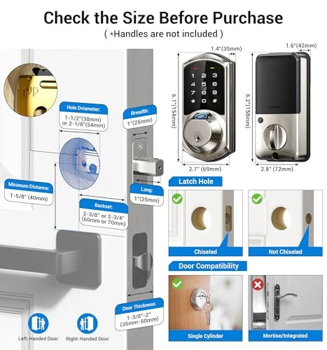 Return Policy Fast Delivery Trusted seller Fingerprint Smart Lock for Front Door, 7-in-1 Keyless Entry Deadbolt with App Control, Electronic Digital Locks with Touchscreen Keypad, Auto Lock, Easy Install, Waterproof, Satin Nickel Product Description Seven in One Smart Door Locks: The smart deadbolt has seven options to access, Fingerprint + App + Fobs +Code +eKey + Mechanical key, and compatible with Apple Watch Efficient Access Control: Work with up to fifty fingerprints and two hundred and fifty multiple user codes, this keyless deadbolt supports remotely generate and share one-time, permanent, recurring, and scheduled codes to different users Enhanced Functionality: The keypad lock features auto lock, one touch lock, anti-peeping passcode, wrong entry limit, privacy mode, silent mode, passage mode, low battery alarm, waterproof, heat and cold-resistant capabilities Remote Access: By connecting the electric door lock with G2 gateway (sold separately), you can remotely control and manage passcodes, check real-time access log and pushed notifications, voice control with Alexa and Google Assistant Easy Installation: Just with a screwdriver, you can have it up and running. The digital lock is compatible with most US standard doors. We offers technical support and after-sales email service Shipping Returns Payment Shipping Shipping is FREE to all addresses other than APO/PO boxes in the lower 48 states. All our stock ships from US-based warehouses. Shipped via USPS or UPS (depending on location and package weight) Unless stated otherwise, all orders will ship within 24-72 hours of your payment being processed. Check our feedback to see the great reviews of FAST shipping we offer. Returns Seller does not accept returns Payment We currently accept payment via eBay managed payments only. Once payment is cleared, we will dispatch your shipment within 1-3 business days. Please refer to the "Shipping" tab for more information regarding shipping speed to your destination.