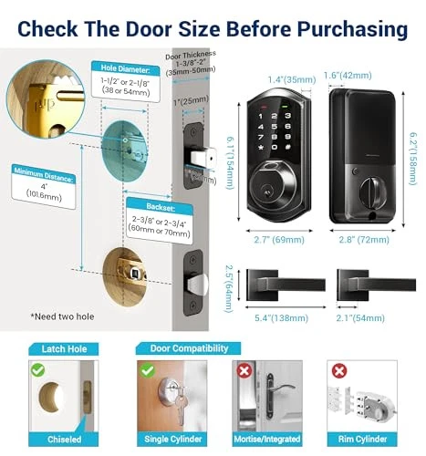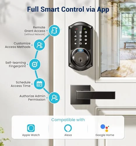 Return Policy Fast Delivery Trusted seller Fingerprint Smart Locks for Front Door with 2 Lever Handle Set, App Control, Keyless Entry, Electronic Digital Keypad Deadbolt, Auto Lock, Waterproof, Easy to Install, Matte Black Product Description Total Control: Smart Lock grants access management via fingerprint, password, fobs, keys, Apple Watch, and voice control (Requires G2 Gateway) Instant Keyless Entry: Fingerprint or IC card swiftly unlock in 0.3 s. Auto-lock in the time customized or one-touch locking, ideal for busy people and those who lock themselves out Convenience & Security: Work with DDlock App to share eKeys, manage users and set various access codes. With anti-peep code, wrong code limit to secure safety Remote Control (Requires G2 Gateway): Once connected, you can access remotely via Alexa, Google Home, and monitor in real time for ultimate peace of mind Effortless Installation: Install quickly with just a screwdriver. Compatible with standard US doors. Its chic design seamlessly complements home decor and is more duarable with weatherproof rating Reliable and Reassured: offers one-year warranty, technical support, phone service on weekdays 9 AM to 5 PM PST and 24/7 after-sales email service Note: Avoid changing master password via keypad before pairing with the app. Touch keypad to activate lock before pairing. If the app fails to connect, perform a reset Shipping Returns Payment Shipping Shipping is FREE to all addresses other than APO/PO boxes in the lower 48 states. All our stock ships from US-based warehouses. Shipped via USPS or UPS (depending on location and package weight) Unless stated otherwise, all orders will ship within 24-72 hours of your payment being processed. Check our feedback to see the great reviews of FAST shipping we offer. Returns Seller does not accept returns Payment We currently accept payment via eBay managed payments only. Once payment is cleared, we will dispatch your shipment within 1-3 business days. Please refer to the "Shipping" tab for more information regarding shipping speed to your destination.