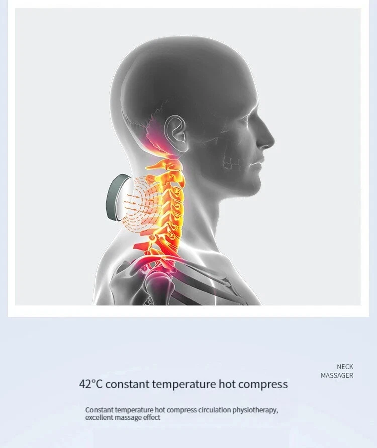 • Intelligent Charging : The neck massager is equipped with an intelligent charging system that ensures it's always ready to use when you need it. • Heating and Hot Pressing : The neck massager provides both heating and hot pressing massage therapy, making it perfect for relieving tension and promoting relaxation. • Multi-User Usage : The neck massager is designed to accommodate multiple users, making it a great choice for families or groups of friends. • Portable Pulse Neck Massager : The neck massager is lightweight and portable, allowing you to take it with you wherever you go and enjoy a relaxing massage on the go. FEATURE: Stimulates the cervical spine tendons and relieves cervical discomfort. Deep care, magnetic physiotherapy, low electric frequency pulse conduction into the skin, relieve neck discomfort, relieve fatigue throughout the day. 42 ° thermostatic hot compress, thermostatic hot compress + circulation physiotherapy, massage effect. Multiple model combinations: Pulse fashion Hammer mode Kneading mode Acupressure mode Automatic fashion Product Info NeckH66 Weight: about 140g, with color box about 290g Size: 20*19.5*6cm Rated Power:3w NeckH88 Weight: about 450g with color box Size: 18.5*21*9cm Rated Power:3w NeckH99 Weight: with color box 460g or so Size: 19.2*13.4*21cm Rated Power:3w Notice: 1. Due to the difference in display, shooting light and environment there will be some color difference between the actual color and the picture color, which is normal. 2. Due to manual measurement, the size of the product may have 0.5-1cm difference. 3.lf you have any questions, please contact us first and we will solve it for you. Please read the instructions carefully before use, have a nice life!