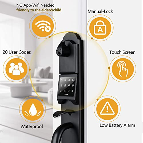 Return Policy Fast Delivery Trusted seller Keyless Entry Door Lock Set, Heavy Duty Smart Double Door Handleset with Touchscreen Keypad, Electronic Keyed &Dummy Exterior Door Lock Set, Right Handed, 17.52'' Length Product Description 【Make Your Life Easier】Unlock with touchscreen passwords(or emergency keys)&manual thumb turn lock from outside. Up to 20 user codes, suitable for harsh environment, NO App/Wifi, low battery alert, manual locking 【Both left and right handed】This handleset in the package is right handed, you can also change the handleset to the left handed by pull&turn the tail piece(inside the handle, deadbolt place) 【Latch & Door Thickness】2 sizes of latch: 2-3/8''& 2-3/4''(60mm/70mm). Door Thickness from 1-3/8'' to 1-3/4'' 【Adjustable hole distance】 You don't need to worry about installation or size problem. The handle set bottom stem is adjustable to fit your door holes 【Easy to install】Just need a screwdriver (all door lock hardwares are included, except AA battery) Shipping Returns Payment Shipping Shipping is FREE to all addresses other than APO/PO boxes in the lower 48 states. All our stock ships from US-based warehouses. Shipped via USPS or UPS (depending on location and package weight) Unless stated otherwise, all orders will ship within 24-72 hours of your payment being processed. Check our feedback to see the great reviews of FAST shipping we offer. Returns Seller does not accept returns Payment We currently accept payment via eBay managed payments only. Once payment is cleared, we will dispatch your shipment within 1-3 business days. Please refer to the "Shipping" tab for more information regarding shipping speed to your destination.