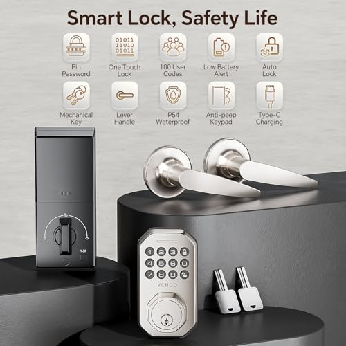 Smart Keyless Entry Deadbolt Lock with Handle for Front Door