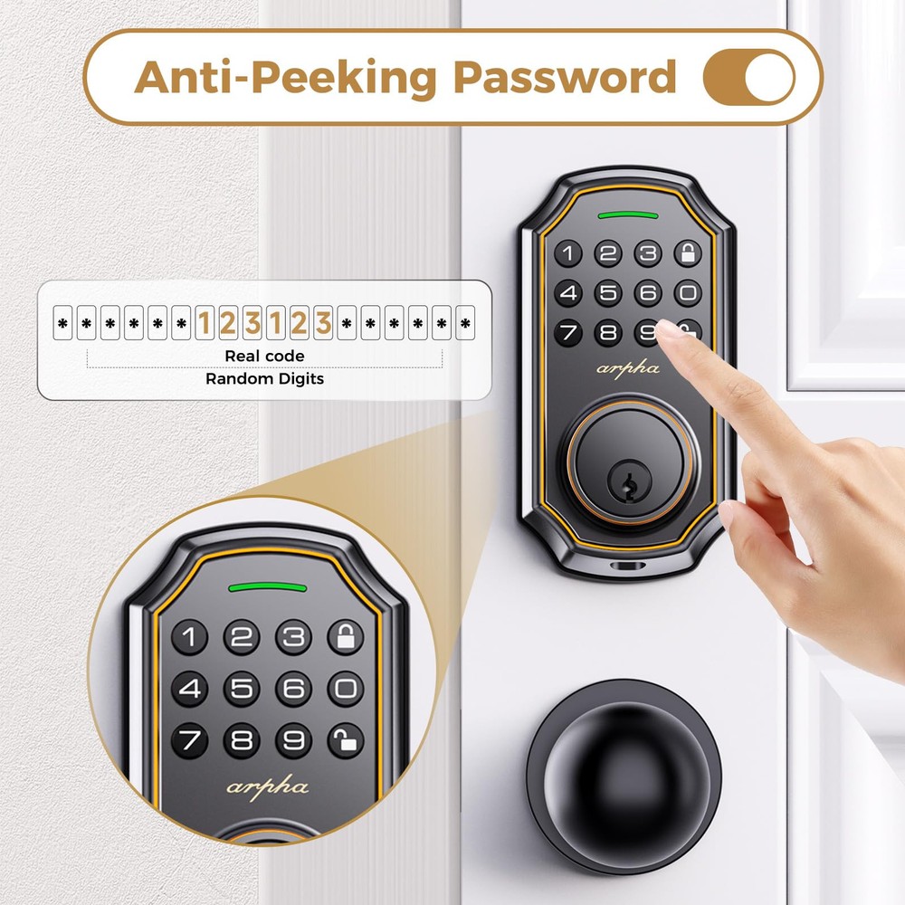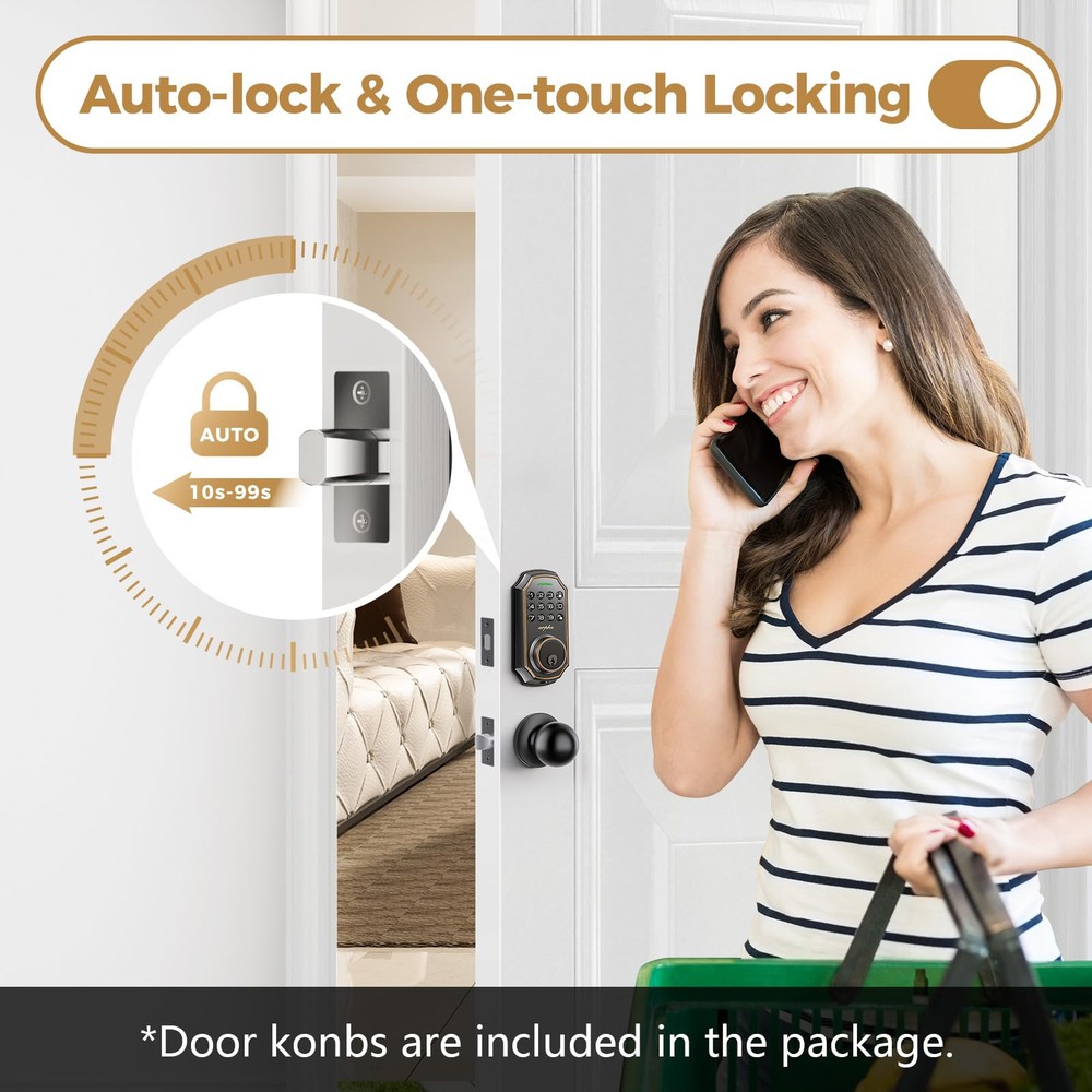 Keyless Entry Door Lock: keyless entry door lock could be unlocked via App + Password + EKey + Mechanical key. Smart deadbolt supports 100 groups of access codes for the front door, including 97 users and 3 admin passcodes. Everything you need in 1 safe and secure smart lock. App Control: User could generate and share -time, permanent, scheduled, and recurring code with your family, house sitters and guests. Manage users, and view access records in the app management system. The App is no additional charge and can be used forever. App remote unlocking requires the use of a gateway : B09YHFG933 Auto Lock and Touch Lock: Electronic keypad door lock is designed with a smart -touch switch. Keypad door lock offers -touch lock feature to control the door easily. You can enable the auto-lock feature and set the timer from 10s-30min! Now you don't need to worry about forgetting to lock the door. Anti Peeping Password: keyless entry door lock deadbolt with handle set supports 16-digit virtual password unlocking method. Users could unlock by entering 10 to 8 digits before or after setting a 6 to 8 digit password. Add random numbers before or after your correct passcode to protect it from prying eyes. Long Battery Life: Keypad door lock supports 4 AA batteries. **Batteries would not be included in the package.** Digital door lock could be used for around 180 days without frequent battery . Easy to Install and Programme: keypad code door lock fits for most US standard left and right hand doors. You can easily install it in a few minutes without drilling. VIDEO GUIDE will walk you through the whole setting process. ๐๐ฑ๐๐๐ฉ๐ญ๐ข๐จ๐ง๐๐ฅ ๐๐ฎ๐ฉ๐ฉ๐จ๐ซ๐ญ & ๐๐ฌ๐ฌ๐ฎ๐ซ๐๐ง๐๐: Our dedicated support team is available 24/7 after-sales service to assist you.offers a 30-day money-back and 18 monthassurance and technical support, Please do not hesitate to tell us if you need ourhelp.