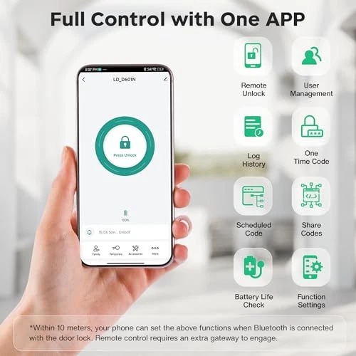 Return Policy Fast Delivery Trusted seller Keyless Entry Door Lock, Smart Auto Locks for Front Door & Key Fobs & Remote Control, Keypad Deadbolt Digital, Fingerprint Door Lock with Code, Cerraduras Inteligentes, IP68, Satin Nickel Product Description 【Effortless Keyless Entry】The keyless entry door lock has multiple unlocking methods to get into your home, including fingerprint, password, IC card, NFC devices, Smart APP, and mechanical lock to ensure convenient entry. You will not be locked out or need to spend time searching pockets and bags. 【Smart Management】You can add & delete users, generate passwords for others, and view the unlocking records; Multiple smart devices can be controlled by one APP. A Tuya GATEWAY (SOLD SEPERATELY) IS REQUIRED FOR REMOTE CONTROL and checking real-time unlocking records 【Enhanced Security】The waterproof IP68 smart door lock has undergone rigorous extreme temperature testing and can withstand a usage environment of -4 to 122 ℉. The fingerprint door lock uses customized high-tech chips with accurate biometric recognition technology (please cover the entire fingerprint as much as possible when registering). Equipped with a curved screen with anti-peeping keypad, the keypad deadbolt has auto-locking, one-touch locking, and anti-theft alarm functions. 【Responsive & Accurate Recognition】The front door lock with code uses customized high-tech chips, which is responsive to password and fingerprint verification. Built-in mature biometric technology - fingerprint recognition, the electronic door lock can accurately identify the user at the moment of pressing down the finger (less than 0.3S) after every edge of the fingerprint is fully recorded. 【Full Control with One APP】Using Tuya APP or Smart Life APP not only allows remote unlocking for visitors, or generate one-time, time sensitive, or permanent passwords sharing them with your visitors, but also enables remote viewing records of door lock unlocking and anti-theft alarms anytime & anyw. Additionally, some functions of the dead bolt locks for exterior doors can be set by the Apps (such as adjusting the Extend Unlock(for auto-lock) and volume of automatic door locking). 【Fit to All Doors】The smart deadbolt lock is compatible with both left and right handed doors. Automatically identify the unlocking direction after installation. Ideal for houses, Airbnb, apartments, offices, and hotels. 【Quick Installation】No extra drilling needed. Just one Phillips screwdriver you can finish the installation the combination door lock within a few minutes. Please refer to the user manual and the QR codes for detailed installation instructions. Includes all accessories(cylinder*1, mechanical keys*2, IC card*2, screw kit*1, user manual*1, installation template*1). Shipping Returns Payment Shipping Shipping is FREE to all addresses other than APO/PO boxes in the lower 48 states. All our stock ships from US-based warehouses. Shipped via USPS or UPS (depending on location and package weight) Unless stated otherwise, all orders will ship within 24-72 hours of your payment being processed. Check our feedback to see the great reviews of FAST shipping we offer. Returns Seller does not accept returns Payment We currently accept payment via eBay managed payments only. Once payment is cleared, we will dispatch your shipment within 1-3 business days. Please refer to the "Shipping" tab for more information regarding shipping speed to your destination.